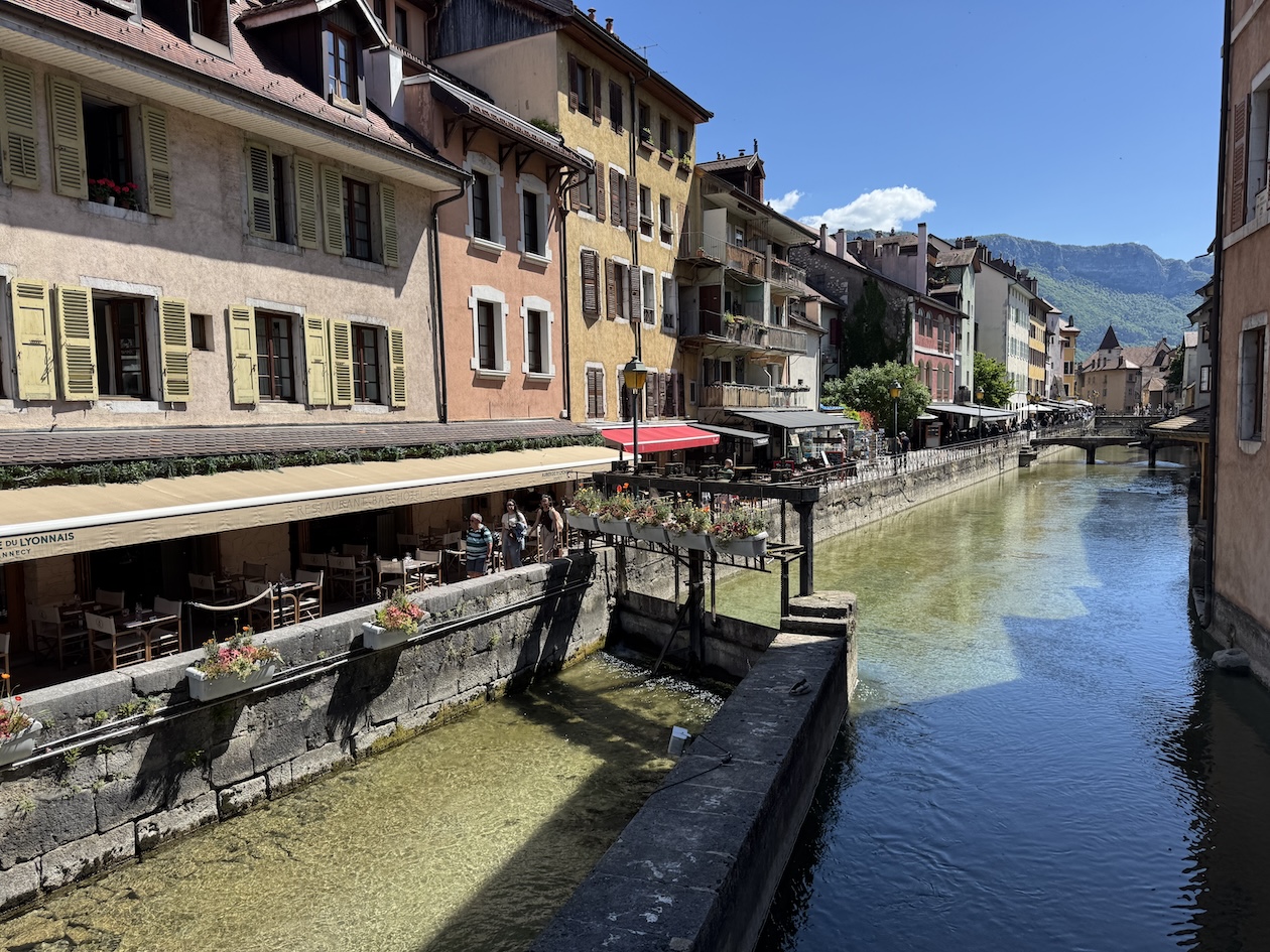 One of the truly unique and picturesque features of Annecy, are the canals. They wind around the old town, lined with colorful houses, markets and restaurants. (May 17, 2025)