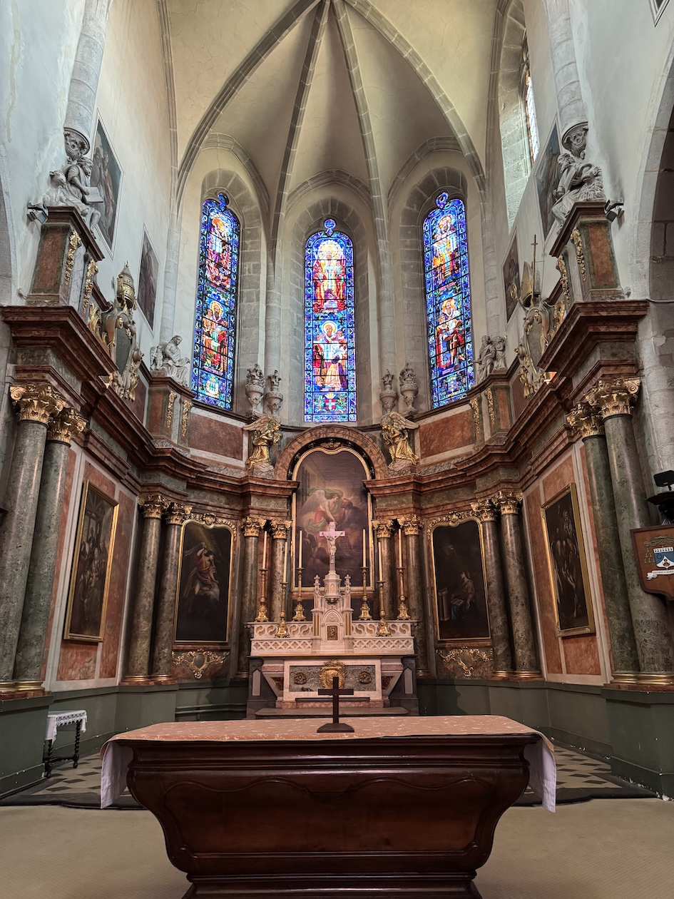 The altar inside the Église Saint-François de Sales or Church of St. Francis de Sales in old town Annecy. (May 18, 2025)