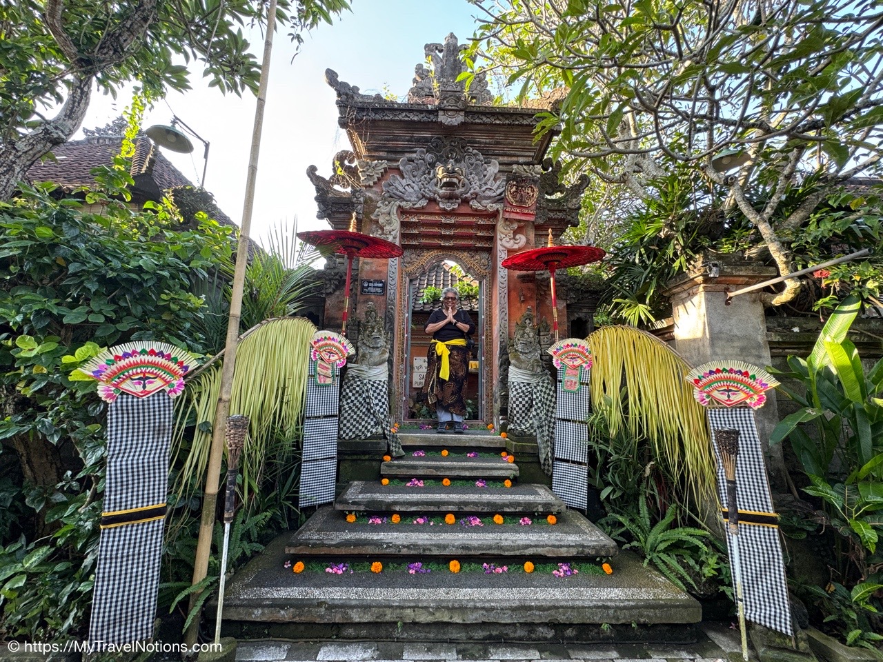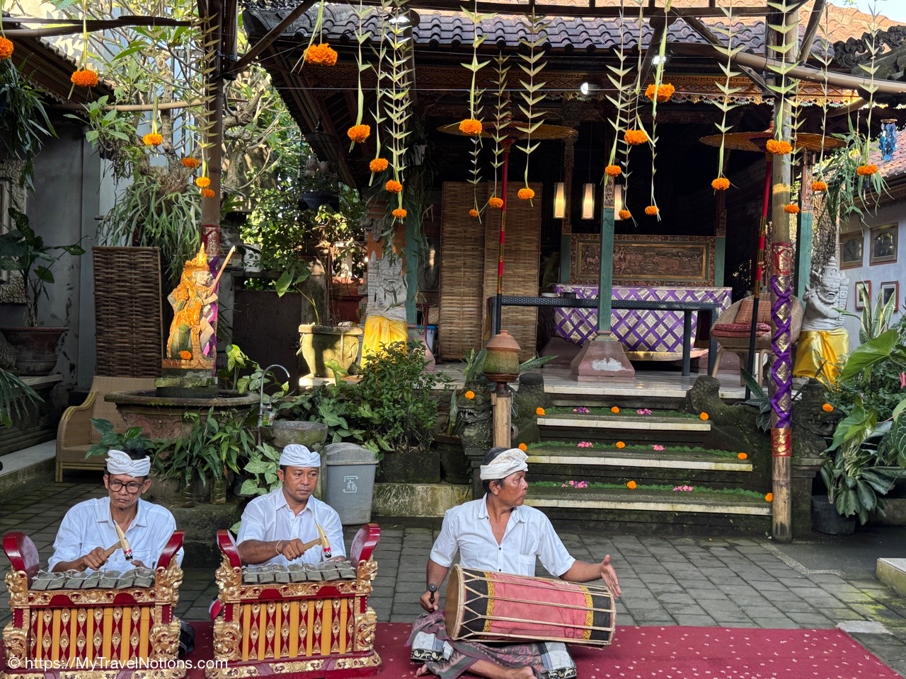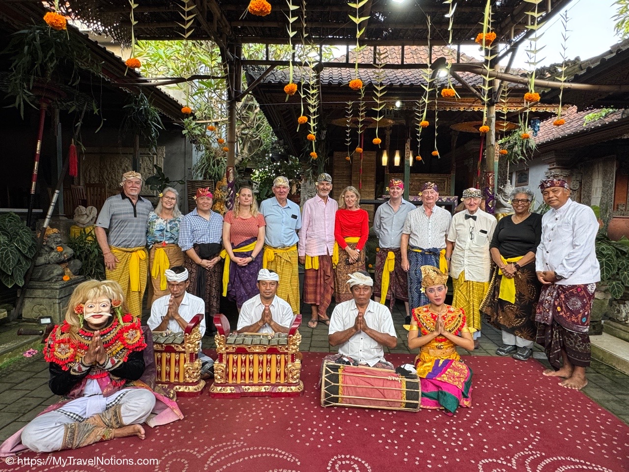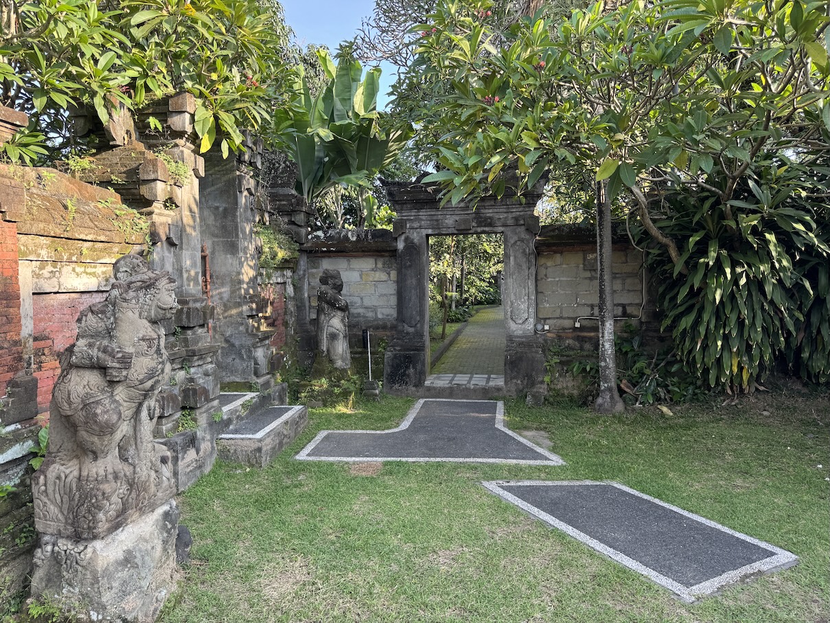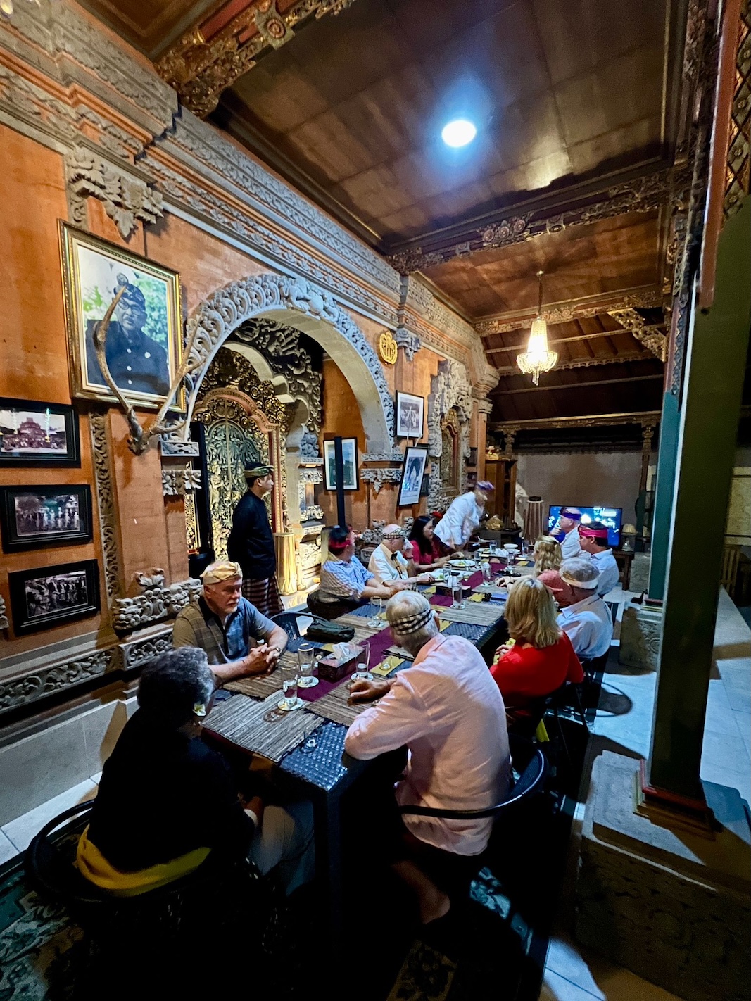 Me inside the exterior courtyard at Ubud Palace, officially Puri Saren Agung, a historical building complex situated in Ubud, Gianyar Regency of Bali, Indonesia wearing a traditional Balinese sarong. (Sept. 28, 2025)After being fitted with our traditional Balinese sarongs at the exterior courtyard of Ubud Palace, officially Puri Saren Agung, we’re all waiting to get our photos taken. (Sept. 28, 2025)After being fitted with our traditional Balinese sarongs at the exterior courtyard of Ubud Palace, officially Puri Saren Agung, we’re all waiting to get our photos taken. (Sept. 28, 2025)Walking through the interior gates of Ubud Palace, officially Puri Saren Agung. (Sept. 28, 2025)Walking through the interior gates of Ubud Palace, officially Puri Saren Agung. (Sept. 28, 2025)Walking through the interior gates of Ubud Palace, officially Puri Saren Agung. (Sept. 28, 2025)Walking through the interior gates of Ubud Palace, officially Puri Saren Agung. (Sept. 28, 2025)Standing at another gated entrance into Ubud Palace, officially Puri Saren Agung. (Sept. 28, 2025)Coming into the courtyard while live Javanese gamelan music was playing at Ubud Palace, officially Puri Saren Agung. (Sept. 28, 2025)Our host and Balinese royal family member Pak Anak Agung Ari, welcoming us to Ubud Palace, officially Puri Saren Agung, and introducing us to the intricate and culturally significant Legong dance. (Sept. 28, 2025)The intricate and culturally significant Legong dance and gamelan musicians at Ubud Palace, officially Puri Saren Agung. The Balinese Legong is a highly refined, classical court dance characterized by intricate finger movements, complicated footwork, expressive facial gestures, and, often, the use of fans. (Sept. 28, 2025)The intricate and culturally significant Legong dance and gamelan musicians at Ubud Palace, officially Puri Saren Agung. The Balinese Legong is a highly refined, classical court dance characterized by intricate finger movements, complicated footwork, expressive facial gestures, and, often, the use of fans. (Sept. 28, 2025)The intricate and culturally significant Legong dance and gamelan musicians at Ubud Palace, officially Puri Saren Agung. The Balinese Legong is a highly refined, classical court dance characterized by intricate finger movements, complicated footwork, expressive facial gestures, and, often, the use of fans. (Sept. 28, 2025)A group photo with our Ubud Palace royal host, Pak Anak Agung Ari, the Legong dancers and the gamelan musicians at Ubud Palace (Puri Saren Agung). From left: Clive, Nicole, Glen, Victoria, Bill, Rob, Frances, Alex, David, Mike, me and Pak Anak Agung Ari, a member of the Balinese royal family. (Sept. 28, 2025)Walking through the courtyard up to our table for dinner at Ubud Palace officially Puri Saren Agung. (Sept. 28, 2025)Enjoying our Balinese dinner with Pak Anak Agung Ari, a member of the Balinese royal family at Ubud Palace officially Puri Saren Agung in Bali. (Sept. 28, 2025)A view of the courtyard where we enjoyed the Legong dancers performance and gamelan music inside the royal Ubud Palace officially Puri Saren Agung in Bali. (Sept. 28, 2025)Our first dinner entry with a member of the Balinese royal family at Ubud Palace officially Puri Saren Agung in Bali. (Sept. 28, 2025)Our next meal entry with a member of the Balinese royal family at Ubud Palace officially Puri Saren Agung in Bali. (Sept. 28, 2025)Our main meal entry with a member of the Balinese royal family at Ubud Palace officially Puri Saren Agung in Bali. (Sept. 28, 2025)Our dessert with a member of the Balinese royal family at Ubud Palace officially Puri Saren Agung in Bali. (Sept. 28, 2025)After dinner drinks and conversation the royal Ubud Palace officially Puri Saren Agung in Bali. Thanks Nicole for the photo. (Sept. 28, 2025)A view of the our dining area inside the royal Ubud Palace officially Puri Saren Agung in Bali. (Sept. 28, 2025)Our after dinner photo at Ubud Place officially Puri Saren Agung in Bali. From left: David, Mike, Bill, Glen, Nicole, Clive, Frances, Rob, Victoria, Alex, me, our host and member of the royal family, Pak Anak Agung Ari and our dear Intrepid Travel leader, Sherly. (Sept. 28, 2025)
