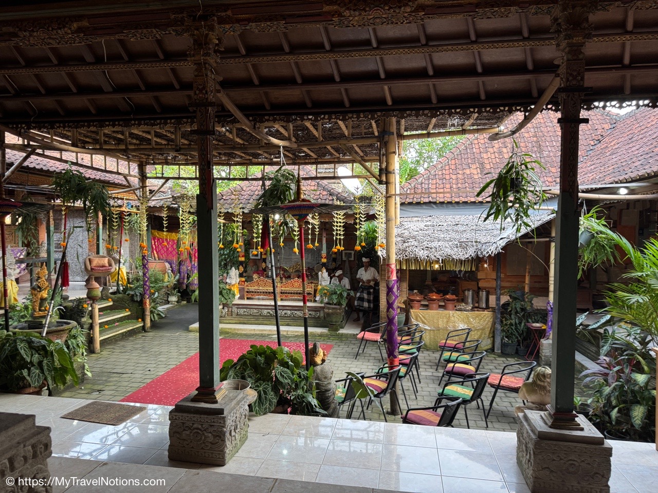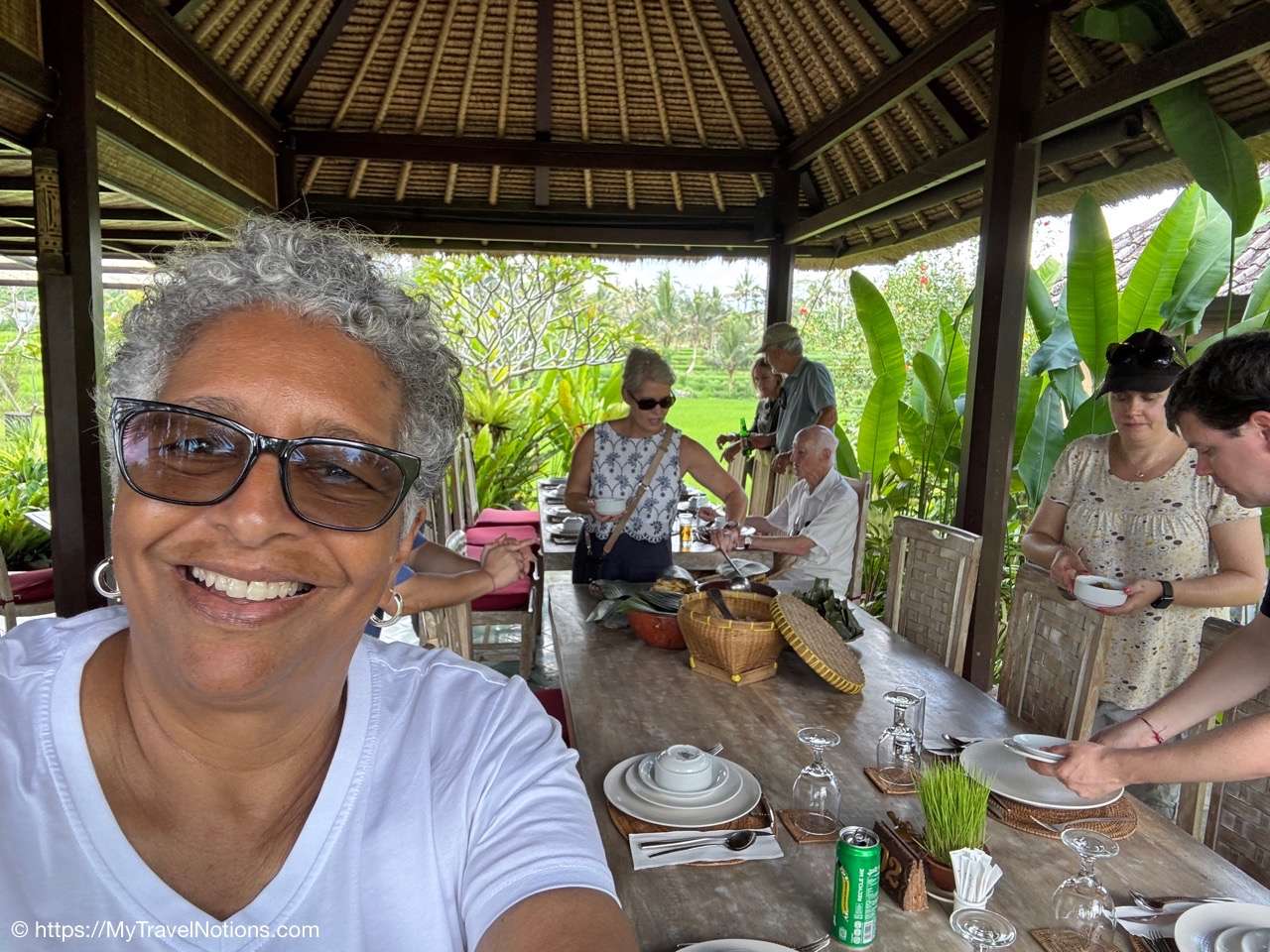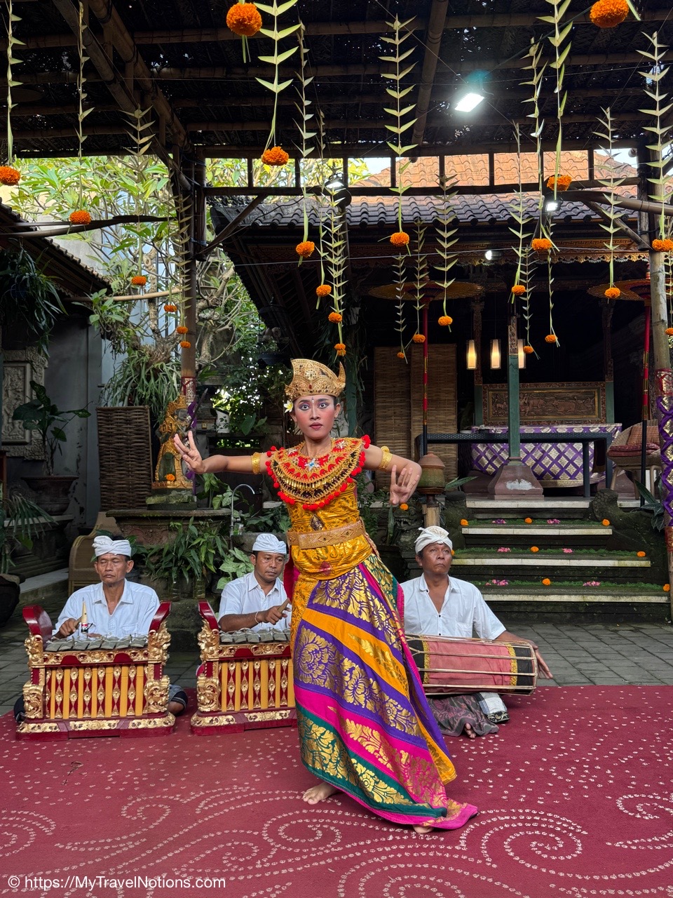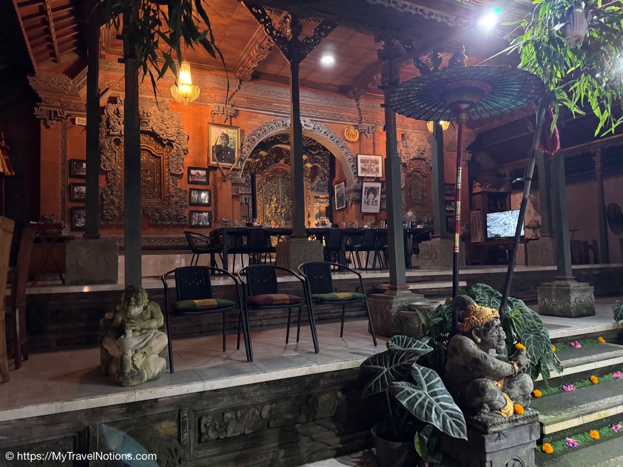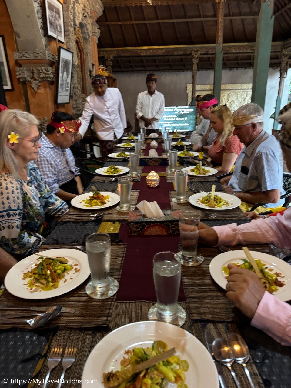 Me inside the exterior courtyard at Ubud Palace, officially Puri Saren Agung, a historical building complex situated in Ubud, Gianyar Regency of Bali, Indonesia wearing a traditional Balinese sarong. (Sept. 28, 2025)After being fitted with our traditional Balinese sarongs at the exterior courtyard of Ubud Palace, officially Puri Saren Agung, we’re all waiting to get our photos taken. (Sept. 28, 2025)After being fitted with our traditional Balinese sarongs at the exterior courtyard of Ubud Palace, officially Puri Saren Agung, we’re all waiting to get our photos taken. (Sept. 28, 2025)Walking through the interior gates of Ubud Palace, officially Puri Saren Agung. (Sept. 28, 2025)Walking through the interior gates of Ubud Palace, officially Puri Saren Agung. (Sept. 28, 2025)Walking through the interior gates of Ubud Palace, officially Puri Saren Agung. (Sept. 28, 2025)Walking through the interior gates of Ubud Palace, officially Puri Saren Agung. (Sept. 28, 2025)Standing at another gated entrance into Ubud Palace, officially Puri Saren Agung. (Sept. 28, 2025)Coming into the courtyard while live Javanese gamelan music was playing at Ubud Palace, officially Puri Saren Agung. (Sept. 28, 2025)Our host and Balinese royal family member Pak Anak Agung Ari, welcoming us to Ubud Palace, officially Puri Saren Agung, and introducing us to the intricate and culturally significant Legong dance. (Sept. 28, 2025)The intricate and culturally significant Legong dance and gamelan musicians at Ubud Palace, officially Puri Saren Agung. The Balinese Legong is a highly refined, classical court dance characterized by intricate finger movements, complicated footwork, expressive facial gestures, and, often, the use of fans. (Sept. 28, 2025)The intricate and culturally significant Legong dance and gamelan musicians at Ubud Palace, officially Puri Saren Agung. The Balinese Legong is a highly refined, classical court dance characterized by intricate finger movements, complicated footwork, expressive facial gestures, and, often, the use of fans. (Sept. 28, 2025)The intricate and culturally significant Legong dance and gamelan musicians at Ubud Palace, officially Puri Saren Agung. The Balinese Legong is a highly refined, classical court dance characterized by intricate finger movements, complicated footwork, expressive facial gestures, and, often, the use of fans. (Sept. 28, 2025)A group photo with our Ubud Palace royal host, Pak Anak Agung Ari, the Legong dancers and the gamelan musicians at Ubud Palace (Puri Saren Agung). From left: Clive, Nicole, Glen, Victoria, Bill, Rob, Frances, Alex, David, Mike, me and Pak Anak Agung Ari, a member of the Balinese royal family. (Sept. 28, 2025)Walking through the courtyard up to our table for dinner at Ubud Palace officially Puri Saren Agung. (Sept. 28, 2025)Enjoying our Balinese dinner with Pak Anak Agung Ari, a member of the Balinese royal family at Ubud Palace officially Puri Saren Agung in Bali. (Sept. 28, 2025)A view of the courtyard where we enjoyed the Legong dancers performance and gamelan music inside the royal Ubud Palace officially Puri Saren Agung in Bali. (Sept. 28, 2025)Our first dinner entry with a member of the Balinese royal family at Ubud Palace officially Puri Saren Agung in Bali. (Sept. 28, 2025)Our next meal entry with a member of the Balinese royal family at Ubud Palace officially Puri Saren Agung in Bali. (Sept. 28, 2025)Our main meal entry with a member of the Balinese royal family at Ubud Palace officially Puri Saren Agung in Bali. (Sept. 28, 2025)Our dessert with a member of the Balinese royal family at Ubud Palace officially Puri Saren Agung in Bali. (Sept. 28, 2025)After dinner drinks and conversation the royal Ubud Palace officially Puri Saren Agung in Bali. Thanks Nicole for the photo. (Sept. 28, 2025)A view of the our dining area inside the royal Ubud Palace officially Puri Saren Agung in Bali. (Sept. 28, 2025)Our after dinner photo at Ubud Place officially Puri Saren Agung in Bali. From left: David, Mike, Bill, Glen, Nicole, Clive, Frances, Rob, Victoria, Alex, me, our host and member of the royal family, Pak Anak Agung Ari and our dear Intrepid Travel leader, Sherly. (Sept. 28, 2025)