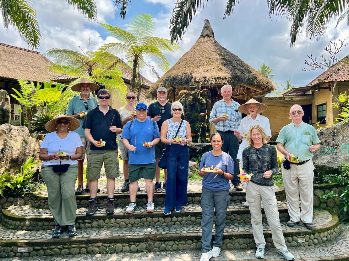 Early morning views of Mount Batur from the Caldera Hotel and Restaurant is an active volcano in Kintamani, Northeast Bali. (Sept. 27, 2025)Early morning views of Mount Batur and Lake Batur from the Caldera Hotel and Restaurant, an active volcano in Kintamani, Northeast Bali. (Sept. 27, 2025)Early morning views of Mount Batur and Lake Batur from the Caldera Hotel and Restaurant, an active volcano in Kintamani, Northeast Bali. (Sept. 27, 2025)Early morning views of Mount Batur and Lake Batur from the Caldera Hotel and Restaurant, an active volcano in Kintamani, Northeast Bali. (Sept. 27, 2025)Early morning views of Mount Batur and Lake Batur from the Caldera Hotel and Restaurant, an active volcano in Kintamani, Northeast Bali. (Sept. 27, 2025)Early morning views of Mount Batur and Lake Batur from the Caldera Hotel and Restaurant, an active volcano in Kintamani, Northeast Bali. (Sept. 27, 2025)Early morning views of Mount Batur and Lake Batur from the Caldera Hotel and Restaurant, an active volcano in Kintamani, Northeast Bali. (Sept. 27, 2025)Me at the Caldera Hotel and Restaurant, an active volcano in Kintamani, Northeast Bali. (Sept. 27, 2025)From our morning views of Mount Babur, we made our way to the village of Undisan to begin our village walk. (Sept. 27, 2025)Me wearing the traditional Javanese cone-shaped straw hat, known as Caping Gunung (or simply Caping), made from bamboo or dried palm leaves. These durable, breathable hats are widely used by farmers in Java, Indonesia, to protect against sun and rain, these durable and they are a staple of rural life and agricultural work. Thanks Nicole for the photo. (Sept. 27, 2025)Walking through the Balinese village of Undisan. (Sept. 27, 2025)Women walking through the village of Undisan with offerings of food on their heads. (Sept. 27, 2025)Morning offerings are one of the many spiritual aspects of Balinese culture during our walk through the village of Undisan. Along with flower petals, it’s also common to see food items — such as crackers, cookies, or candies placed inside coconut leaves as the base for the offering. When placed on the streets everything should be edible so that the offerings can simultaneously (and safely) serve the purpose of feeding stray dogs, monkeys and other animals. (Sept. 27, 2025)Walking through the Balinese village of Undisan. (Sept. 27, 2025)Walking through the Balinese village of Undisan. (Sept. 27, 2025)Walking through the Balinese village of Undisan. (Sept. 27, 2025)Walking through the Balinese village of Undisan. (Sept. 27, 2025)Walking through the Balinese village of Undisan. (Sept. 27, 2025)Walking through the Balinese village of Undisan. (Sept. 27, 2025)Walking through the Balinese village of Undisan. (Sept. 27, 2025)Walking through the Balinese village of Undisan. (Sept. 27, 2025)Walking through the Balinese village of Undisan. (Sept. 27, 2025)Walking through the village of Undisan where locals in traditional Balinese attire were playing music in preparation for cremation procession. (Sept. 27, 2025)Walking through the village of Undisan where locals in traditional Balinese attire were playing music in preparation for cremation procession. (Sept. 27, 2025)During our walk through the village of Undisan, we were welcomed to the preparations for a Balinese Hindu cremation ceremony for that afternoon. The men of the village and other villagers, in traditional Balinese attire, preparing for the cremation procession. (Sept. 27, 2025)The family home area of the deceased person in preparation for the cremation procession in the village of Undisan. (Sept. 27, 2025)The remains of the deceased person, at the family home in preparation for the cremation procession in the village of Undisan. (Sept. 27, 2025)The remains of the deceased person, at the family home in preparation for the cremation procession in the village of Undisan. (Sept. 27, 2025)The remains of the deceased person, at the family home in preparation for the cremation procession in the village of Undisan. (Sept. 27, 2025)Outside of the family home, in the village of Undisan, the community prepared for the Balinese Hindu cremation ceremony for that afternoon. The ceremony is to celebrate the soul’s release rather than mourning the death. Village processions feature massive, colorful cremation towers and bull-shaped sarcophagi carried to the cremation site, often accompanied by lively music, spinning at crossroads to confuse spirits, and final purification by fire. The men make the decorations and the women make the offerings of food. (Sept. 27, 2025)During our walk through the village of Undisan, we were welcomed to the preparations for a Balinese Hindu cremation ceremony for that afternoon. The men of the village make the decorations and the women make the offerings of food. Villagers carry the deceased in an elaborate tower that holds the body that is then transferred to a bull-shaped sarcophagus for burning. (Sept. 27, 2025)During our walk through the village of Undisan, we were welcomed to the preparations for a Balinese Hindu cremation ceremony for that afternoon. The men of the village make the decorations and the women make the offerings of food. Villagers carry the deceased in an elaborate tower that holds the body that is then transferred to a bull-shaped sarcophagus for burning. (Sept. 27, 2025)During our walk through the village of Undisan, we were welcomed to the preparations for a Balinese Hindu cremation ceremony for that afternoon. The men of the village make the decorations and the women make the offerings of food. Villagers carry the deceased in an elaborate tower that holds the body that is then transferred to a bull-shaped sarcophagus for burning. (Sept. 27, 2025)More offerings on the sides of the street in the village of Undisan during our walk towards the cremation area and rice fields. (Sept. 27, 2025)Instead of burying the deceased in the ground, the dead are placed on the ground for cremation at the village of Undisan f
