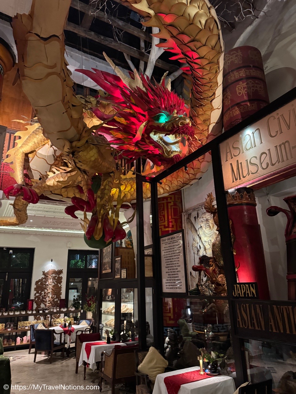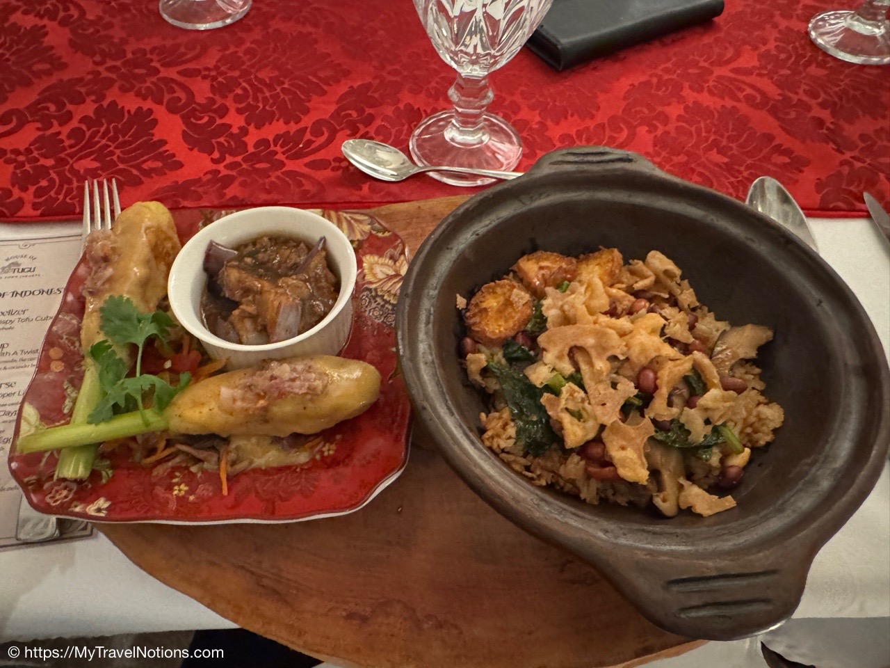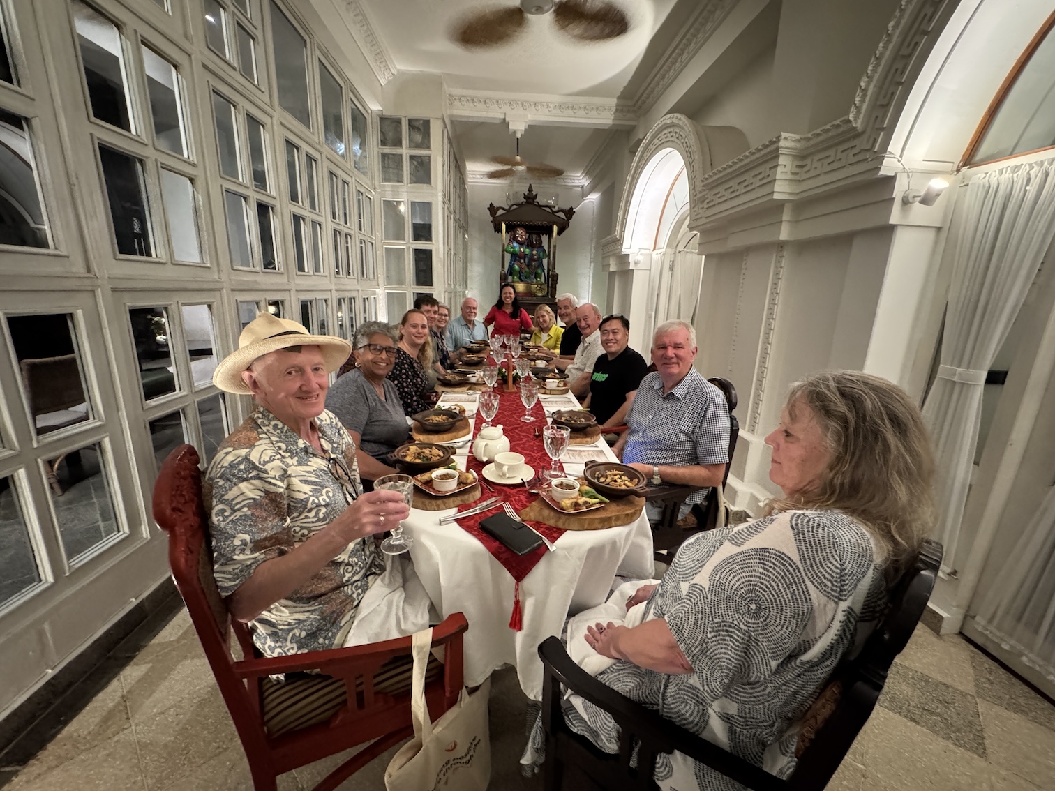 The map of my Intrepid Travel ‘Premium Java and Bali’ 11-day tour of Indonesia that began in Jakarta and ended in Sanur.The exterior entrance of the House of Tugu in Old Town Jakarta where our Intrepid Travel group enjoyed an included authentic Indonesian group dinner at this special restaurant housed in a Dutch mansion. (Sept. 21, 2025)Entering the House of Tugu in Old Town Jakarta where our Intrepid Travel group enjoyed an included authentic Indonesian group dinner at this special restaurant housed in a Dutch mansion. (Sept. 21, 2025)Inside the House of Tugu in Old Town Jakarta where our Intrepid Travel group had our first tour group dinner. I arrived in Jakarta late in the afternoon from my solo travels in Singapore. (Sept. 21, 2025)Inside the House of Tugu in Old Town Jakarta where our Intrepid Travel group had our first tour group dinner. I arrived in Jakarta late in the afternoon from my solo travels in Singapore. (Sept. 21, 2025)Inside the House of Tugu in Old Town Jakarta where our Intrepid Travel group had our first tour group dinner. I arrived in Jakarta late in the afternoon from my solo travels in Singapore. (Sept. 21, 2025)An appetizer of ‘Salted Egg Crispy Tofu Cubes’ at the House of Tugu in Old Town Jakarta where our Intrepid Travel group had our first tour group dinner. (Sept. 21, 2025)The soup, Soto Ayam With A Twist, described as a truffle burrer masted chicken, grated shrimp crumbs, flat rice noodles & 62 degrees egg in fragrant rummeric, lime & coriander broth, part of our ‘Taste of Indonesia’ menu at the House of Tugu in Old Town Jakarta where our Intrepid Travel group had our first tour group dinner. (Sept. 21, 2025)The Main Course, Babah House Chicken Claypot Rice with lapchiong sausages, drunken shirake, japanese tofu, steamed nuts, pickled lotus roots, baby kaclan, and fried ginger part of our ‘Taste of Indonesia’ menu at the House of Tugu in Old Town Jakarta where our Intrepid Travel group had our first tour group dinner. (Sept. 21, 2025)And, the Cendol Panna Cotta for dessert made of coconur milk panna con, pandan-flavored cendol jelly and gula melaka palm syrup at the House of Tugu in Old Town Jakarta where our Intrepid Travel group had our first tour group dinner. (Sept. 21, 2025)Our first Intrepid Travel tour group photo at our first group dinner at the House of Tugu in Old Town Jakarta. One member, the woman at the front of the table, ended up leaving the group after this dinner. (Sept. 21, 2025)