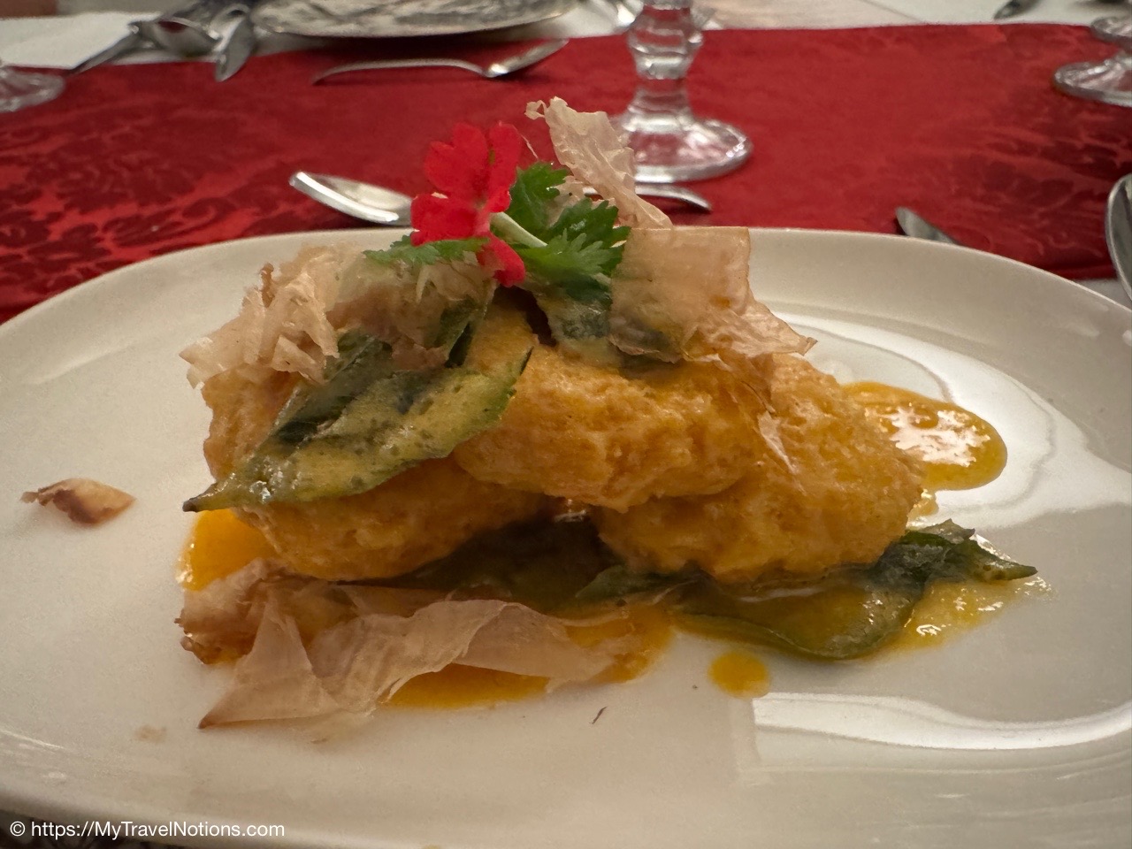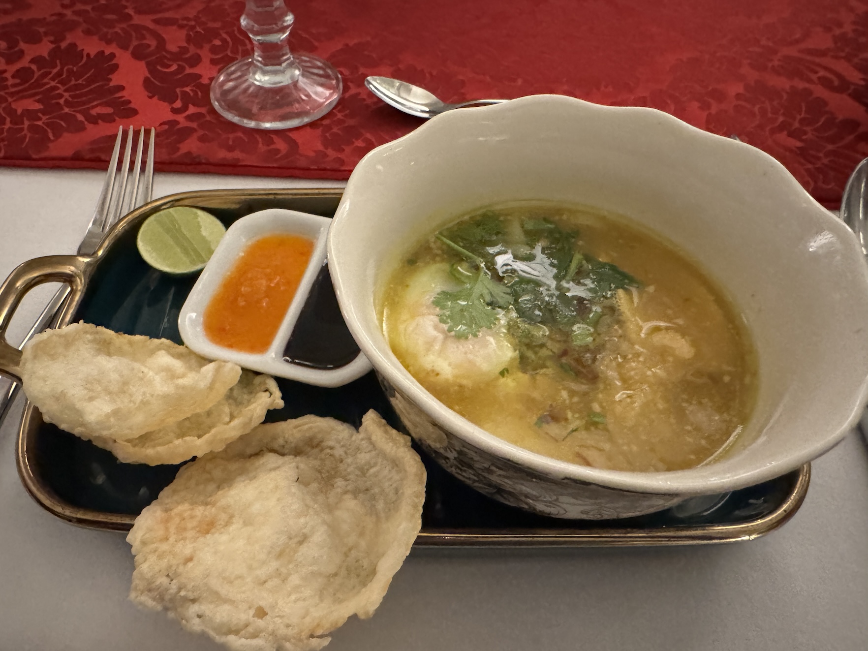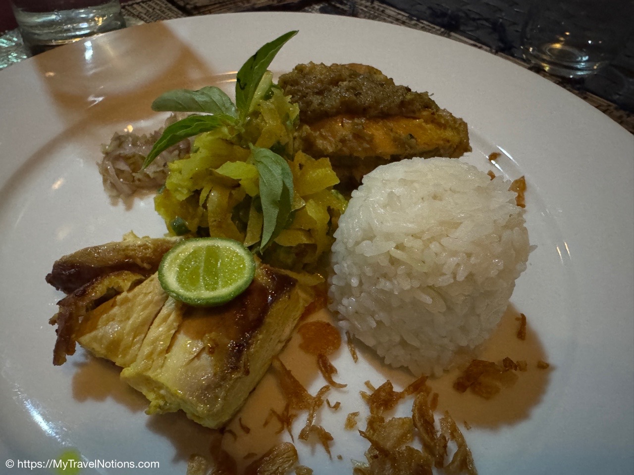 The map of my Intrepid Travel ‘Premium Java and Bali’ 11-day tour of Indonesia that began in Jakarta and ended in Sanur.The exterior entrance of the House of Tugu in Old Town Jakarta where our Intrepid Travel group enjoyed an included authentic Indonesian group dinner at this special restaurant housed in a Dutch mansion. (Sept. 21, 2025)Entering the House of Tugu in Old Town Jakarta where our Intrepid Travel group enjoyed an included authentic Indonesian group dinner at this special restaurant housed in a Dutch mansion. (Sept. 21, 2025)Inside the House of Tugu in Old Town Jakarta where our Intrepid Travel group had our first tour group dinner. I arrived in Jakarta late in the afternoon from my solo travels in Singapore. (Sept. 21, 2025)Inside the House of Tugu in Old Town Jakarta where our Intrepid Travel group had our first tour group dinner. I arrived in Jakarta late in the afternoon from my solo travels in Singapore. (Sept. 21, 2025)Inside the House of Tugu in Old Town Jakarta where our Intrepid Travel group had our first tour group dinner. I arrived in Jakarta late in the afternoon from my solo travels in Singapore. (Sept. 21, 2025)An appetizer of ‘Salted Egg Crispy Tofu Cubes’ at the House of Tugu in Old Town Jakarta where our Intrepid Travel group had our first tour group dinner. (Sept. 21, 2025)The soup, Soto Ayam With A Twist, described as a truffle burrer masted chicken, grated shrimp crumbs, flat rice noodles & 62 degrees egg in fragrant rummeric, lime & coriander broth, part of our ‘Taste of Indonesia’ menu at the House of Tugu in Old Town Jakarta where our Intrepid Travel group had our first tour group dinner. (Sept. 21, 2025)The Main Course, Babah House Chicken Claypot Rice with lapchiong sausages, drunken shirake, japanese tofu, steamed nuts, pickled lotus roots, baby kaclan, and fried ginger part of our ‘Taste of Indonesia’ menu at the House of Tugu in Old Town Jakarta where our Intrepid Travel group had our first tour group dinner. (Sept. 21, 2025)And, the Cendol Panna Cotta for dessert made of coconur milk panna con, pandan-flavored cendol jelly and gula melaka palm syrup at the House of Tugu in Old Town Jakarta where our Intrepid Travel group had our first tour group dinner. (Sept. 21, 2025)Our first Intrepid Travel tour group photo at our first group dinner at the House of Tugu in Old Town Jakarta. One member, the woman at the front of the table, ended up leaving the group after this dinner. (Sept. 21, 2025)