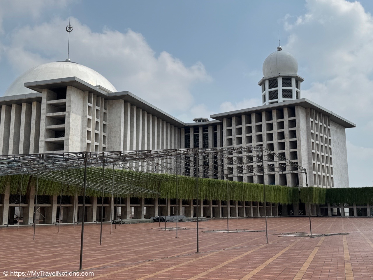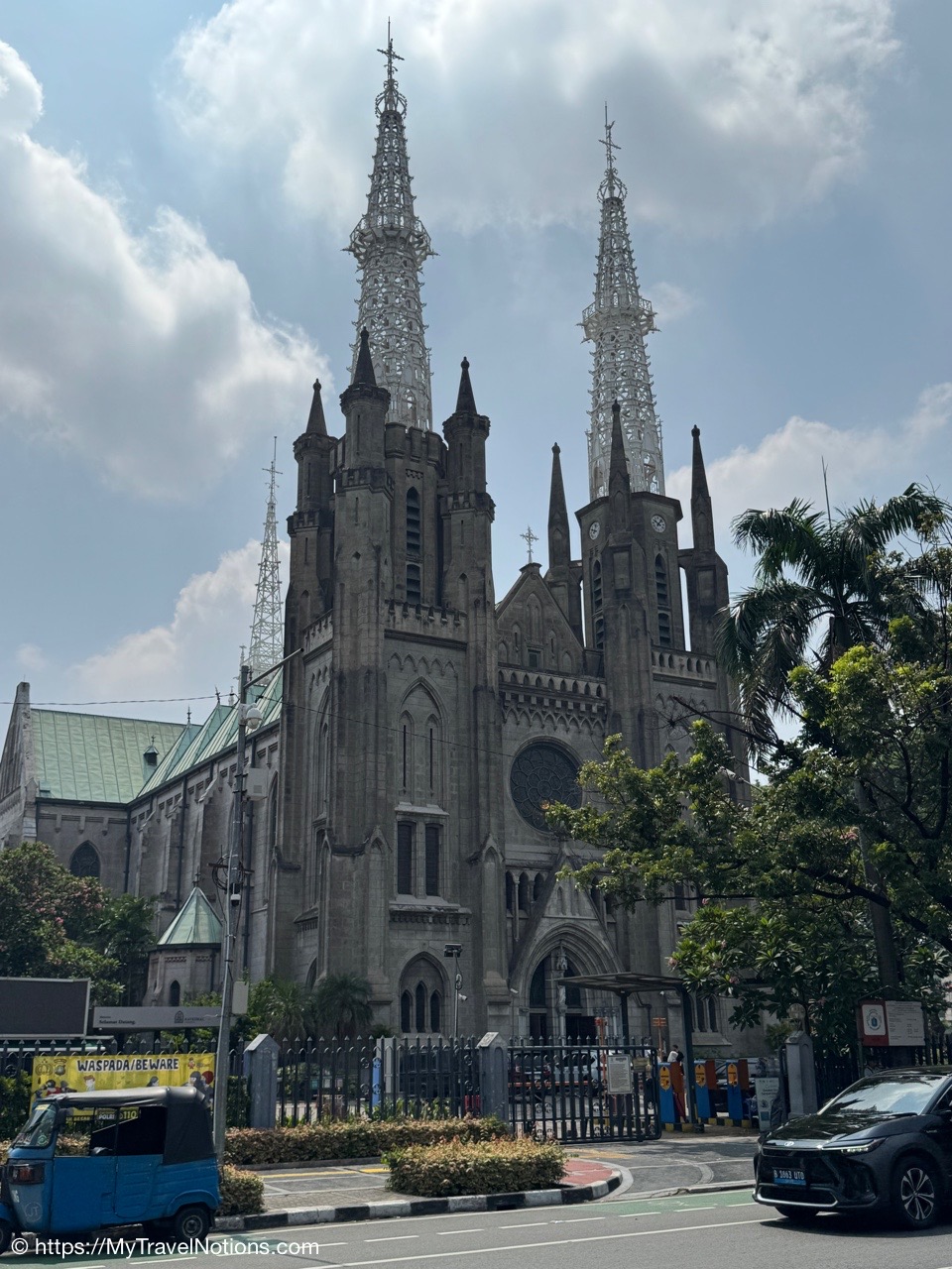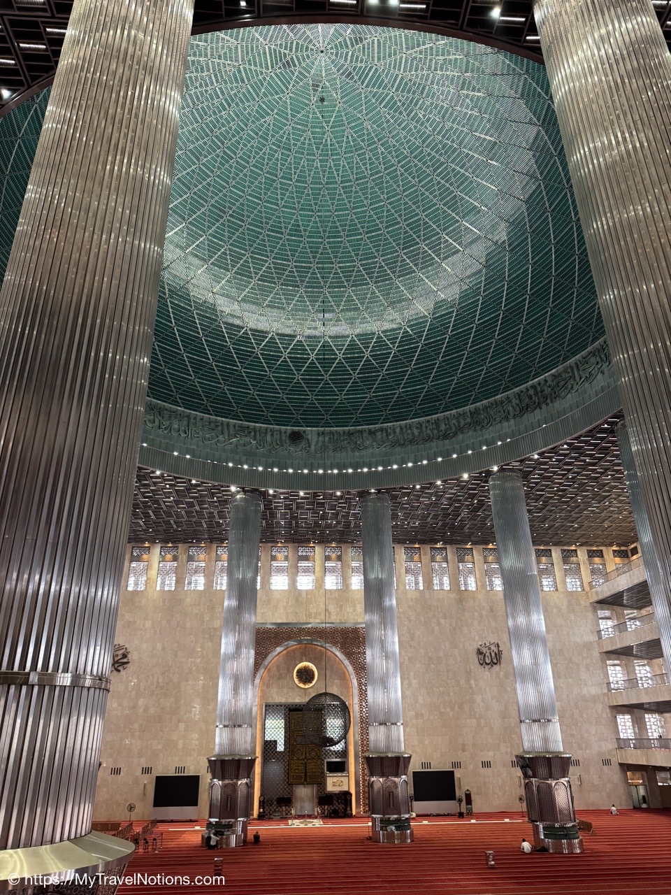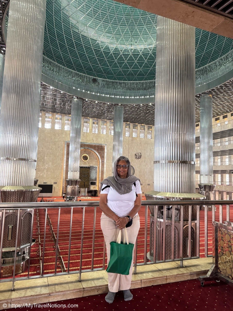 Me inside the Masjid Istiqlal in Jakarta with views of the grand domed prayer hall, supported by 12 concrete columns with stainless steel designs. The concrete mosque was completed in 1978. Its Arabic name “Istiqlal” means “independence”. Located next to the Jakarta Cathedral, the mosque is a national landmark and a significant cultural and architectural treasure, capable of holding about 120,000 worshippers. (Sept. 22, 2025)Views of Jakarta while inside Intrepid’s compact van for a day tour around the sights of Jarkarta where motorcycles are an important form of transportation around the city. (Sept. 22, 2025)We made a quick stop to see the Monas National Monument symbolizing the nation’s struggle for independence and unity was built between 1961 and 1975 to commemorate the long fight against colonial rule. Located in Merdeka Square, it features a golden flame at its apex and houses a historical museum and observation deck offering panoramic city views. (sept. 22, 2025)The ceremonial cavalry unit of the Indonesian Presidential Security Force (Paspampres) performing their duties during a state event at the Istana Merdeka Merdeka or Merdeka Palace in Jakarta. Indonesia has a presidential system where the president is both the head of state and head of government, directly elected by the people for a maximum of two five-year terms. (Sept. 22, 2025)The Masjid Istiqlal in Jakarta, which oddly enough looks like the exterior of a concrete office building with open-looking spaces for ventilation, is a modern, minimalist style mosque with clean lines, contrasting with traditional mosque designs. (Sept. 22, 2025)Inside the grand domed prayer hall, supported by 12 concrete columns with stainless interior, of the Masjid Istiqlal in Jakarta. Designed by Christian architect Frederich Silaban and built between 1961-1978, the mosque symbolizes unity with its grand scale, able to hold about 120,000 people. (Sept. 22, 2025)Inside the grand domed prayer hall, supported by 12 concrete columns with stainless interior, of the Masjid Istiqlal in Jakarta. Designed by Christian architect Frederich Silaban and built between 1961-1978, the mosque symbolizes unity with its grand scale, able to hold about 120,000 people. (Sept. 22, 2025)Inside the grand domed prayer hall, supported by 12 concrete columns with stainless interior, of the Masjid Istiqlal in Jakarta. Designed by Christian architect Frederich Silaban and built between 1961-1978, the mosque symbolizes unity with its grand scale, able to hold about 120,000 people. (Sept. 22, 2025)A close-up of the Mihrab inside the grand domed prayer hall of the Masjid Istiqlal in Jakarta. (Sept. 22, 2025)Inside the grand domed prayer hall, supported by 12 concrete columns with stainless interior, of the Masjid Istiqlal in Jakarta. Designed by Christian architect Frederich Silaban and built between 1961-1978, the mosque symbolizes unity with its grand scale, able to hold about 120,000 people. (Sept. 22, 2025)The large concrete columns with stainless designed inside the grand domed prayer hall of the Masjid Istiqlal in Jakarta. (Sept. 22, 2025)My Intrepid Tour group and myself inside the Masjid Istiqlal in Jakarta. From left: Victoria, Alex, Nicole, Clive, Glen, me, Bill, Frances, Rob, Mike, David and our Intrepid Travel tour group leader, Sherly. (Sept. 22, 2025)Me inside the Masjid Istiqlal in Jakarta. (Sept. 22, 2025)Views of the Masjid Istiqlal in Jakarta from inside the courtyard. (Sept. 22, 2025)The Jakarta Cathedral, officially the Cathedral of Our Lady of the Assumption just across from the and the Masjid Istiqlal, or Istiqlal Mosque in Jakarta. The close proximity showcases religious harmony, a key tenet of the Muslim-majority country’s national identity. A tunnel connecting the Cathedral and the Mosque was constructed between 2020 and 2021. (Sept. 22, 2025)The Jakarta Cathedral, officially the Cathedral of Our Lady of the Assumption, was built between 1891 and 1901. The spirals (spires) on top of Jakarta Cathedral are neo-Gothic iron structures representing religious symbolism. (Sept. 22, 2025)The main entrance of the Church of Our Lady of the Assumption or the Jakarta Cathedral was consecrated in 1901 and built between 1891 and 1901 in the Neo-Gothic style. The spirals (spires) on top of Jakarta Cathedral are neo-Gothic iron structures representing religious symbolism. (Sept. 22, 2025)Inside the Jakarta Cathedral, officially the Cathedral of Our Lady of the Assumption, in Jakarta, Indonesia. (Sept. 22, 2025)The Altar inside the Jakarta Cathedral, officially the Cathedral of Our Lady of the Assumption. (Sept. 22, 2025)Inside the Jakarta Cathedral, officially the Cathedral of Our Lady of the Assumption. (Sept. 22, 2025)Inside the Jakarta Cathedral, officially the Cathedral of Our Lady of the Assumption. (Sept. 22, 2025)Inside the Jakarta Cathedral, officially the Cathedral of Our Lady of the Assumption. (Sept. 22, 2025)The Stations of the Cross in the Jakarta Cathedral are depicted through a series of paintings arranged around the interior walls. This is number V, Simon of Cyrene helps Jesus carry the Cross. (Sept. 22, 2025)The Stations of the Cross in the Jakarta Cathedral are depicted through a series of paintings arranged around the interior walls. This is number X, Jesus is stripped of His garments. (Sept. 22, 2025)The Pietà inside the Jakarta Cathedral. (Sept. 22, 2025)The “Homeless Jesus” sculpture by Canadian sculptor Timothy Paul Schmalz outside a side entrance into the Jakarta Cathedral in Jakarta. The sculpture shoes Jesus sleeping on this concrete slab covered by a blanket, with only the stigmata (nail wounds) on his feet visible. The translated inscription reads: WHAT DID YOU DO WHEN I WAS SICK, HOMELESS, HUNGRY AND THIRSTY, HAD NO CLOTHES, AND WAS IN PRISON…? That powerful question comes from the Gospel of Matthew 25:35-46, specifically Jesus’s teaching on the Final Judgment, where He says serving the needy (hungry, thirsty, str