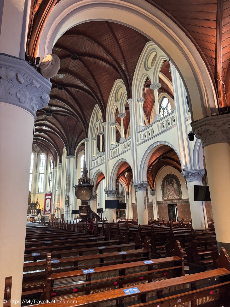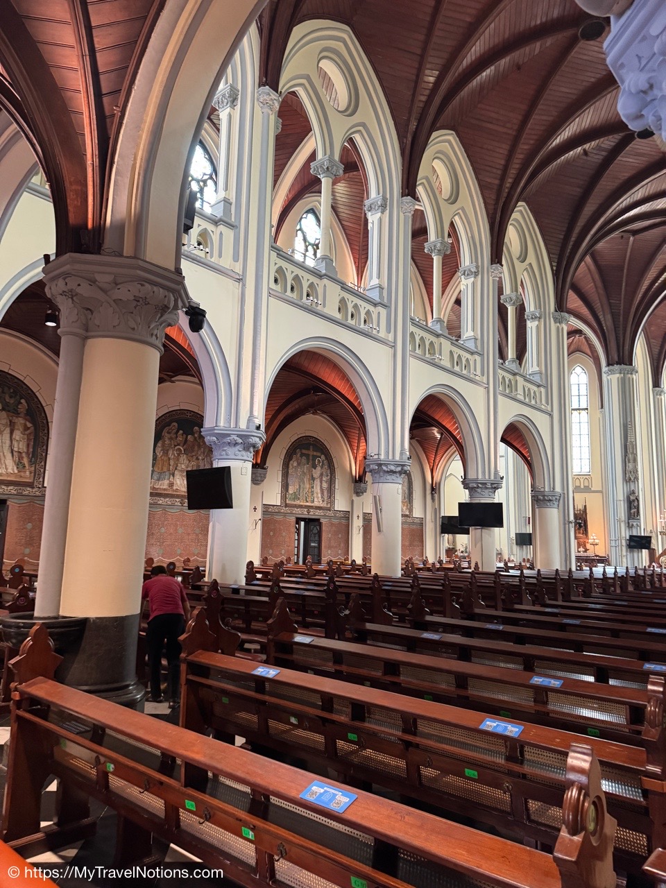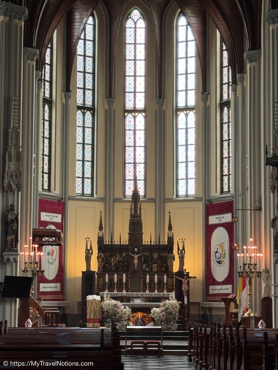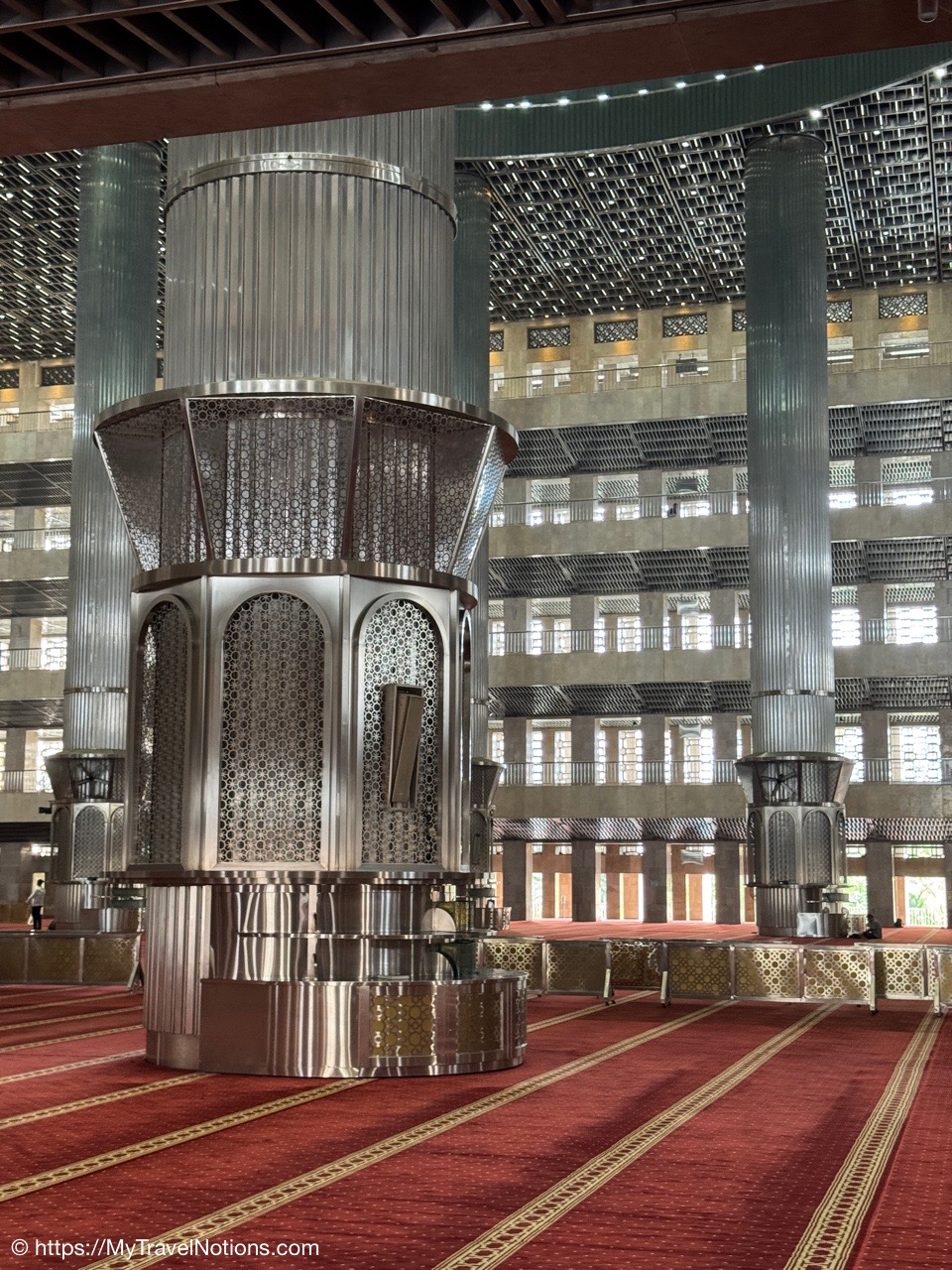 Me inside the Masjid Istiqlal in Jakarta with views of the grand domed prayer hall, supported by 12 concrete columns with stainless steel designs. The concrete mosque was completed in 1978. Its Arabic name “Istiqlal” means “independence”. Located next to the Jakarta Cathedral, the mosque is a national landmark and a significant cultural and architectural treasure, capable of holding about 120,000 worshippers. (Sept. 22, 2025)Views of Jakarta while inside Intrepid’s compact van for a day tour around the sights of Jarkarta where motorcycles are an important form of transportation around the city. (Sept. 22, 2025)We made a quick stop to see the Monas National Monument symbolizing the nation’s struggle for independence and unity was built between 1961 and 1975 to commemorate the long fight against colonial rule. Located in Merdeka Square, it features a golden flame at its apex and houses a historical museum and observation deck offering panoramic city views. (sept. 22, 2025)The ceremonial cavalry unit of the Indonesian Presidential Security Force (Paspampres) performing their duties during a state event at the Istana Merdeka Merdeka or Merdeka Palace in Jakarta. Indonesia has a presidential system where the president is both the head of state and head of government, directly elected by the people for a maximum of two five-year terms. (Sept. 22, 2025)The Masjid Istiqlal in Jakarta, which oddly enough looks like the exterior of a concrete office building with open-looking spaces for ventilation, is a modern, minimalist style mosque with clean lines, contrasting with traditional mosque designs. (Sept. 22, 2025)Inside the grand domed prayer hall, supported by 12 concrete columns with stainless interior, of the Masjid Istiqlal in Jakarta. Designed by Christian architect Frederich Silaban and built between 1961-1978, the mosque symbolizes unity with its grand scale, able to hold about 120,000 people. (Sept. 22, 2025)Inside the grand domed prayer hall, supported by 12 concrete columns with stainless interior, of the Masjid Istiqlal in Jakarta. Designed by Christian architect Frederich Silaban and built between 1961-1978, the mosque symbolizes unity with its grand scale, able to hold about 120,000 people. (Sept. 22, 2025)Inside the grand domed prayer hall, supported by 12 concrete columns with stainless interior, of the Masjid Istiqlal in Jakarta. Designed by Christian architect Frederich Silaban and built between 1961-1978, the mosque symbolizes unity with its grand scale, able to hold about 120,000 people. (Sept. 22, 2025)A close-up of the Mihrab inside the grand domed prayer hall of the Masjid Istiqlal in Jakarta. (Sept. 22, 2025)Inside the grand domed prayer hall, supported by 12 concrete columns with stainless interior, of the Masjid Istiqlal in Jakarta. Designed by Christian architect Frederich Silaban and built between 1961-1978, the mosque symbolizes unity with its grand scale, able to hold about 120,000 people. (Sept. 22, 2025)The large concrete columns with stainless designed inside the grand domed prayer hall of the Masjid Istiqlal in Jakarta. (Sept. 22, 2025)My Intrepid Tour group and myself inside the Masjid Istiqlal in Jakarta. From left: Victoria, Alex, Nicole, Clive, Glen, me, Bill, Frances, Rob, Mike, David and our Intrepid Travel tour group leader, Sherly. (Sept. 22, 2025)Me inside the Masjid Istiqlal in Jakarta. (Sept. 22, 2025)Views of the Masjid Istiqlal in Jakarta from inside the courtyard. (Sept. 22, 2025)The Jakarta Cathedral, officially the Cathedral of Our Lady of the Assumption just across from the and the Masjid Istiqlal, or Istiqlal Mosque in Jakarta. The close proximity showcases religious harmony, a key tenet of the Muslim-majority country’s national identity. A tunnel connecting the Cathedral and the Mosque was constructed between 2020 and 2021. (Sept. 22, 2025)The Jakarta Cathedral, officially the Cathedral of Our Lady of the Assumption, was built between 1891 and 1901. The spirals (spires) on top of Jakarta Cathedral are neo-Gothic iron structures representing religious symbolism. (Sept. 22, 2025)The main entrance of the Church of Our Lady of the Assumption or the Jakarta Cathedral was consecrated in 1901 and built between 1891 and 1901 in the Neo-Gothic style. The spirals (spires) on top of Jakarta Cathedral are neo-Gothic iron structures representing religious symbolism. (Sept. 22, 2025)Inside the Jakarta Cathedral, officially the Cathedral of Our Lady of the Assumption, in Jakarta, Indonesia. (Sept. 22, 2025)The Altar inside the Jakarta Cathedral, officially the Cathedral of Our Lady of the Assumption. (Sept. 22, 2025)Inside the Jakarta Cathedral, officially the Cathedral of Our Lady of the Assumption. (Sept. 22, 2025)Inside the Jakarta Cathedral, officially the Cathedral of Our Lady of the Assumption. (Sept. 22, 2025)Inside the Jakarta Cathedral, officially the Cathedral of Our Lady of the Assumption. (Sept. 22, 2025)The Stations of the Cross in the Jakarta Cathedral are depicted through a series of paintings arranged around the interior walls. This is number V, Simon of Cyrene helps Jesus carry the Cross. (Sept. 22, 2025)The Stations of the Cross in the Jakarta Cathedral are depicted through a series of paintings arranged around the interior walls. This is number X, Jesus is stripped of His garments. (Sept. 22, 2025)The Pietà inside the Jakarta Cathedral. (Sept. 22, 2025)The “Homeless Jesus” sculpture by Canadian sculptor Timothy Paul Schmalz outside a side entrance into the Jakarta Cathedral in Jakarta. The sculpture shoes Jesus sleeping on this concrete slab covered by a blanket, with only the stigmata (nail wounds) on his feet visible. The translated inscription reads: WHAT DID YOU DO WHEN I WAS SICK, HOMELESS, HUNGRY AND THIRSTY, HAD NO CLOTHES, AND WAS IN PRISON…? That powerful question comes from the Gospel of Matthew 25:35-46, specifically Jesus’s teaching on the Final Judgment, where He says serving the needy (hungry, thirsty, str