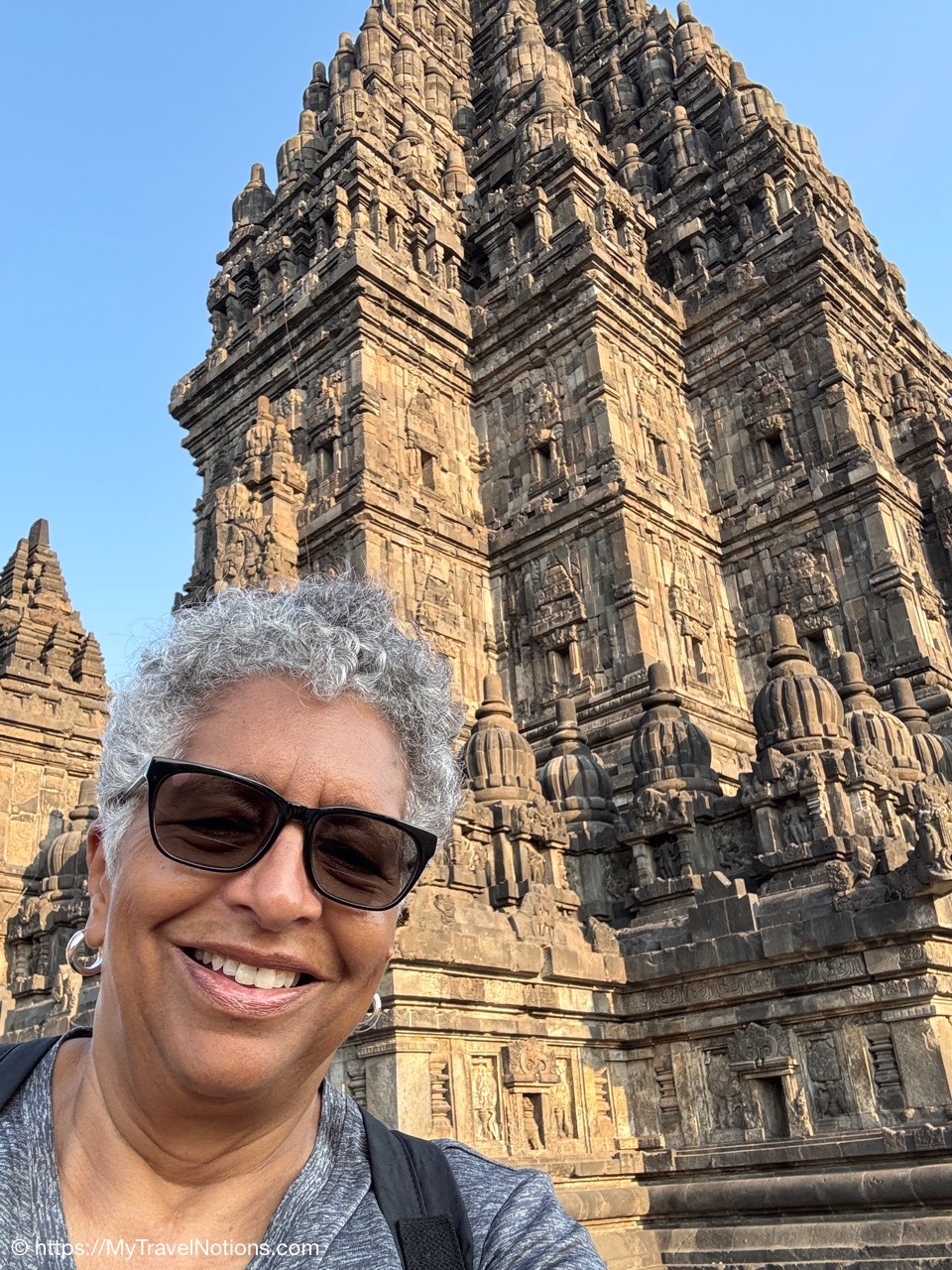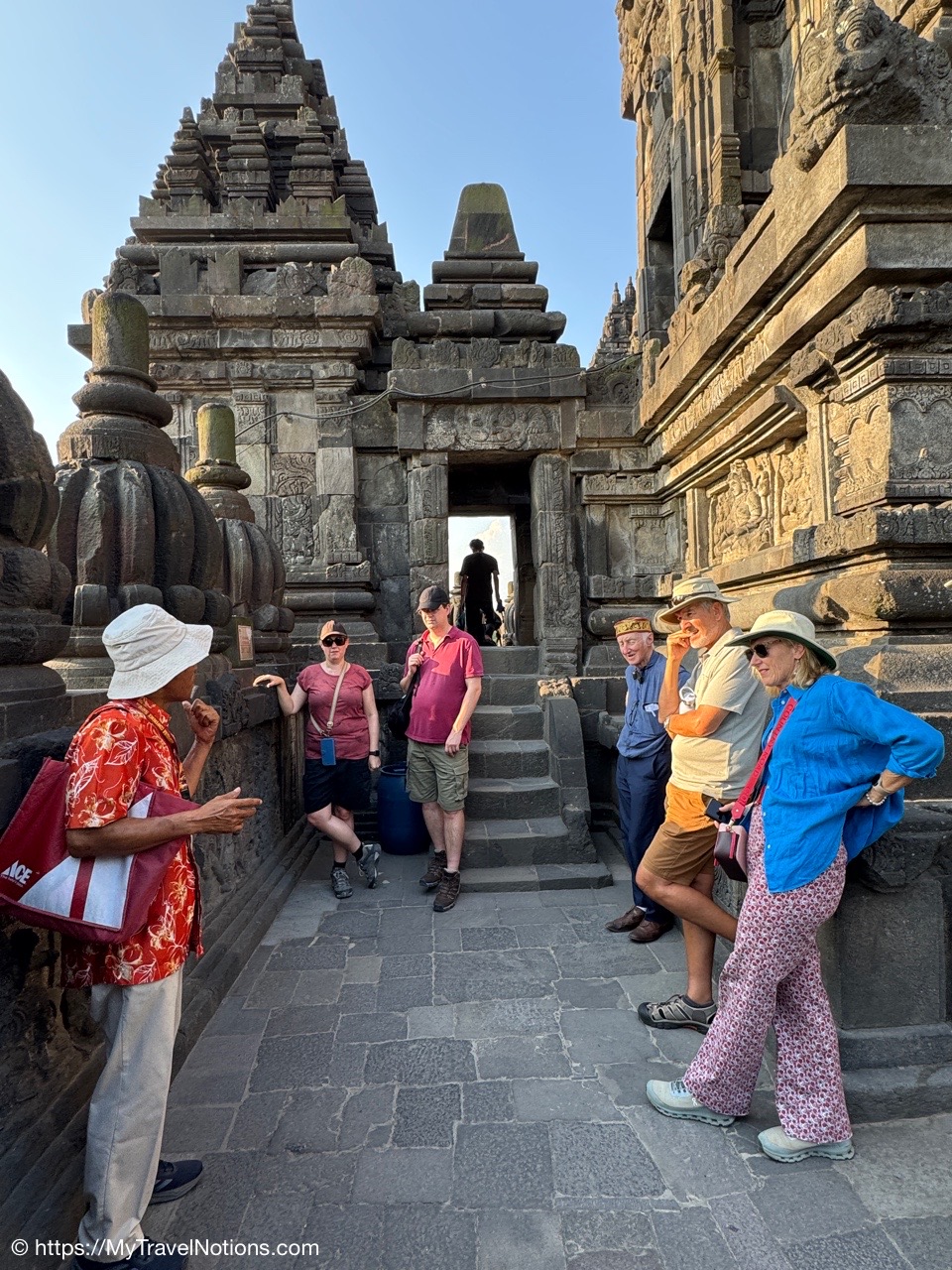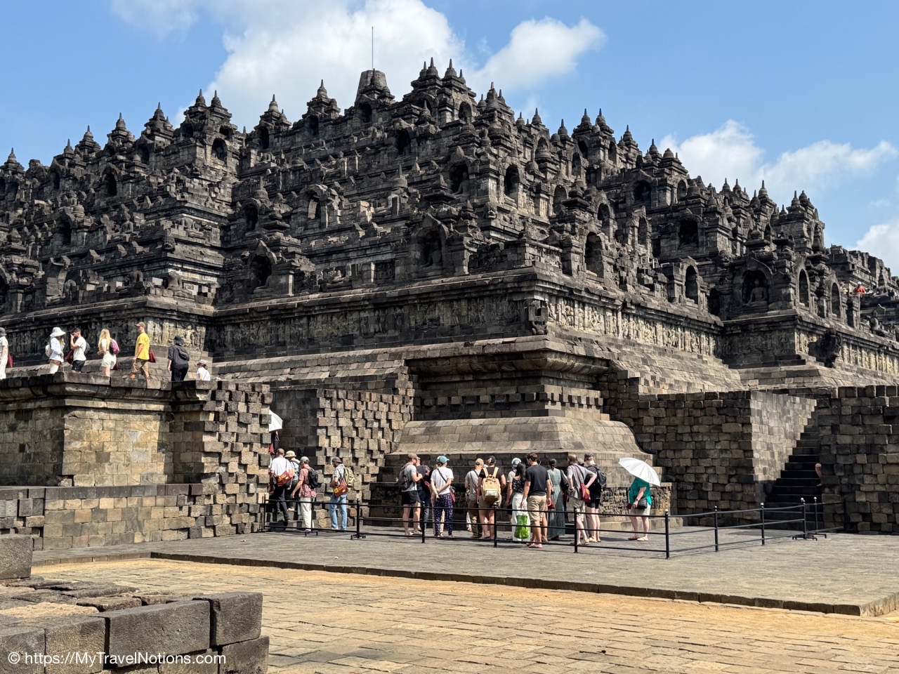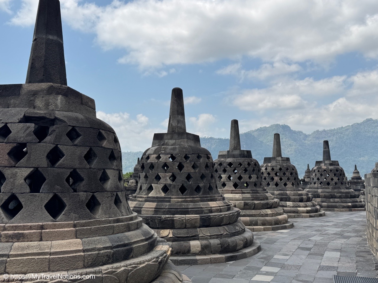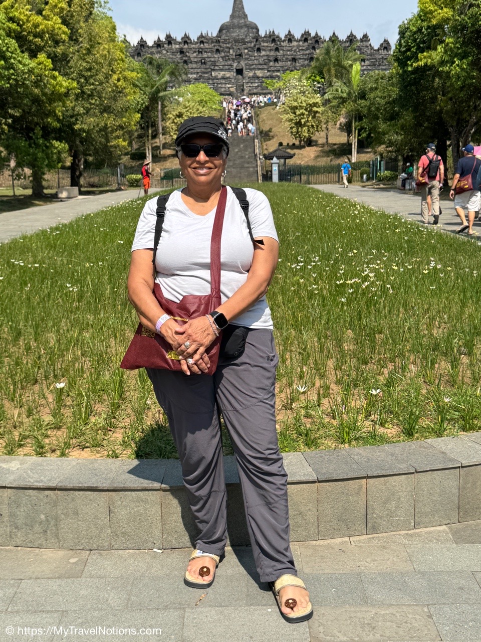 Me at the bell-shaped perforated stupas at the very top of the Borobudur Temple. (Sept. 24, 2025)The entrance of the Borobudur Temple, the world’s largest Buddhist temple is a massive 9th-century stone monument built as a three-dimensional mandala representing the path to enlightenment. It features nine stacked platforms (six square, three circular) adorned with thousands of intricate narrative relief, serving as both a major pilgrimage site and a UNESCO World Heritage Site. (Sept. 24, 2025)Me with a view of the entrance to the Borobudur Temple with my upanat sandals, required wearing to protect the ancient stone steps when climbing the monument near Yogyakarta. The slippers come with the entrance ticket and can be taken home as a souvenir and required to protect the ancient stone steps while climbing the monument. The disadvantage is that I had to carry around my actual shoes inside the provided red tote bag. I found them to be uncomfortable and ended up leaving them in my hotel room. (Sept. 24, 2025)Climbing the initial stairs to access the base of the Borobudur Temple near Yogyakarta. (Sept. 24, 2025)The base level where we began our assent up the steep stone steps to the different upper levels or terraces of the Borobudur Temple near Yogyakarta. The different levels or terraces represent stages of consciousness, culminating at the top with views of stupas and surrounding landscapes. (Sept. 24, 2025)Me at the base level where we began our assent up the steep stone steps to the different upper levels or terraces of the Borobudur Temple near Yogyakarta. The different levels represent stages of consciousness, culminating at the top with views of stupas and surrounding landscapes. (Sept. 24, 2025)A view of the various levels or terraces of the Borobudur Temple near Yogyakarta. (Sept. 24, 2025)On the first terrace or Rupadhatu Level (Square Terraces) of the Borobudur Temple near Yogyakarta. (Sept. 24, 2025)There use to be some 432 Buddha statues hidden within the arches or niches in the balustrades on the Rupadhatu Level (Square Terraces) of the Borobudur Temple. The statues within the niches on the Rupadhatu level often display different hand gestures (mudras), reflecting various aspects of Buddhist teachings. Below the Buddha are the water spouts as mythological sea creatures designed to channel heavy monsoon rainwater away from the structure, preventing erosion and damage, showcasing advanced ancient engineering for a mortarless stone structure. (Sept. 24, 2025)Me sitting at a corner of the on the Rupadhatu Level (Square Terraces) of the Borobudur Temple. (Sept. 24, 2025)The steeped arched stairways of the Borobudur Temple. Climbing the stairs represents the Buddhist path to enlightenment, with different levels representing stages of consciousness. The entire top section represents the Arupadhatu (realm of formlessness), the final stage of spiritual ascent in Buddhist cosmology, leading to enlightenment. (Sept. 24, 2025)Reliefs along the corridor walls on the terraces of the Borobudur Temple. (Sept. 24, 2025)Reliefs along the corridor walls on the terraces of the Borobudur Temple. (Sept. 24, 2025)Reliefs along the corridor walls on the terraces of the Borobudur Temple. (Sept. 24, 2025)Reliefs along the corridor walls on the terraces of the Borobudur Temple. (Sept. 24, 2025)Reliefs along the corridor walls on the terraces of the Borobudur Temple. (Sept. 24, 2025)Reliefs along the corridor walls on the terraces of the Borobudur Temple. (Sept. 24, 2025)Reliefs along the corridor walls on the terraces of the Borobudur Temple. (Sept. 24, 2025)Reliefs along the corridor walls on the terraces of the Borobudur Temple. (Sept. 24, 2025)Reliefs along the corridor walls on the terraces of the Borobudur Temple. (Sept. 24, 2025)Reliefs along the corridor walls on the terraces of the Borobudur Temple. (Sept. 24, 2025)Reliefs along the corridor walls on the terraces of the Borobudur Temple. (Sept. 24, 2025)Our Intrepid Travel tour group at the very top of the Borobudur. From left: Our guide, (Sept. 24, 2025)The bell-shaped perforated stupas at the very top of the Borobudur Temple represents Nirvana. (Sept. 24, 2025)The bell-shaped perforated stupas at the very top of the Borobudur Temple represents Nirvana. (Sept. 24, 2025)Me at the bell-shaped perforated stupas at the very top of the Borobudur Temple. (Sept. 24, 2025)The bell-shaped perforated stupas at the very top of the Borobudur Temple represents Nirvana. (Sept. 24, 2025)The bell-shaped perforated stupas at the very top of the Borobudur Temple is surrounded by mountains, including twin volcanoes Mount Merbabu and Mount Merapi. (Sept. 24, 2025)The bell-shaped perforated stupas at the very top of the Borobudur Temple is surrounded by mountains, including twin volcanoes Mount Merbabu and Mount Merapi. (Sept. 24, 2025)The bell-shaped perforated stupas at the very top of the Borobudur Temple represents Nirvana. (Sept. 24, 2025)The bell-shaped perforated stupas at the very top of the Borobudur Temple represents Nirvana. (Sept. 24, 2025)The bell-shaped perforated stupas at the very top of the Borobudur Temple represents Nirvana. (Sept. 24, 2025)The Buddhas inside the perforated stupas at the top of Borobudur symbolize the path to enlightenment. (Sept. 24, 2025)The Buddhas inside the perforated stupas at the top of Borobudur symbolize the path to enlightenment. (Sept. 24, 2025)Saying goodbye to my visit at the Borobudur Temple near Yogyakarta. (Sept. 24, 2025)The second part of our day was a 2-hour walking tour through the traditional Javanese village of Candirejo close to the Borobudur Temple near Yogyakarta. The village is considered a cultural and eco-tourism destination, offering visitors an authentic glimpse into rural life. (Sept. 24, 2025)Walking through the Candirejo Village close to the Borobudur Temple near Yogyakarta. It is known for its traditional Javanese culture and village life. (Sept. 24, 2025)The Candirejo Village close to the Borobudu
