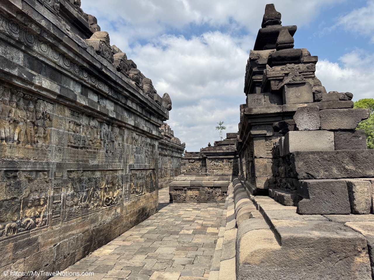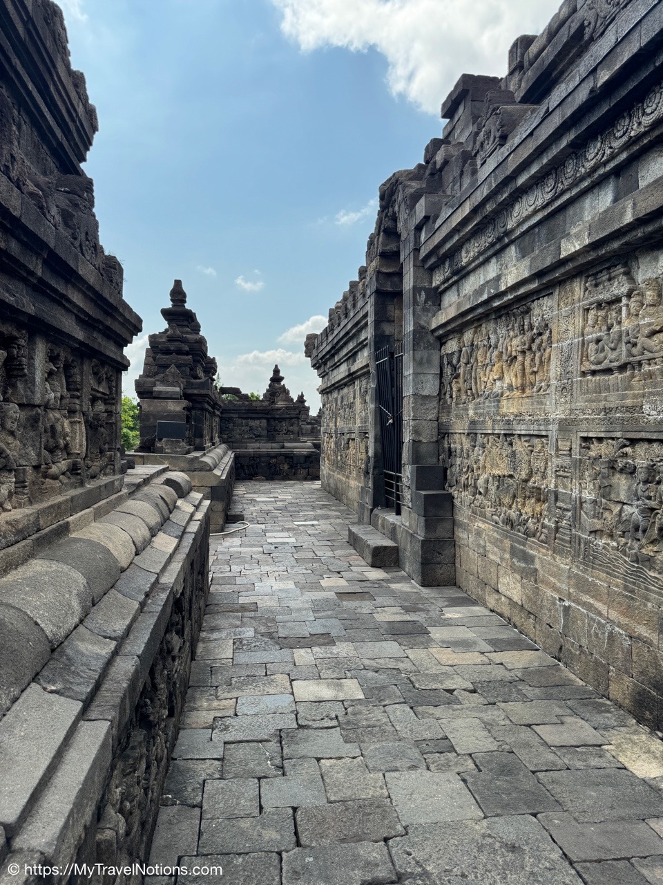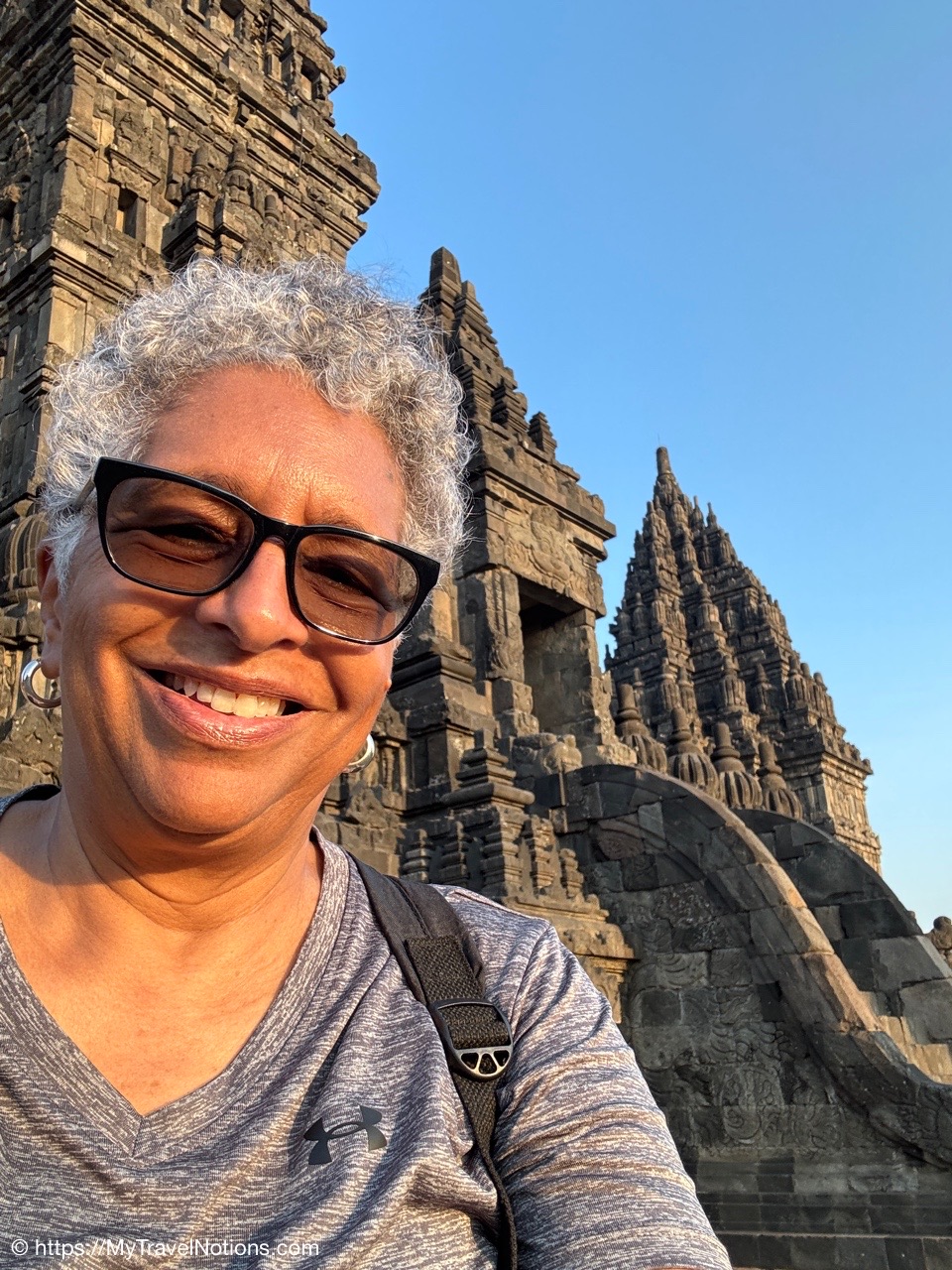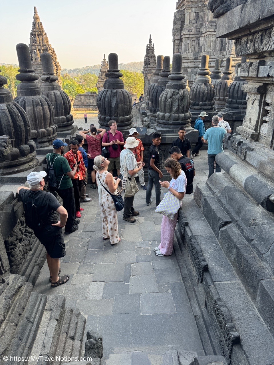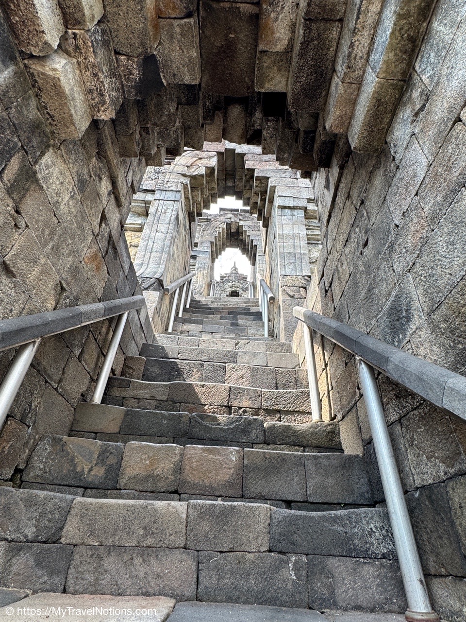 Me at the bell-shaped perforated stupas at the very top of the Borobudur Temple. (Sept. 24, 2025)The entrance of the Borobudur Temple, the world’s largest Buddhist temple is a massive 9th-century stone monument built as a three-dimensional mandala representing the path to enlightenment. It features nine stacked platforms (six square, three circular) adorned with thousands of intricate narrative relief, serving as both a major pilgrimage site and a UNESCO World Heritage Site. (Sept. 24, 2025)Me with a view of the entrance to the Borobudur Temple with my upanat sandals, required wearing to protect the ancient stone steps when climbing the monument near Yogyakarta. The slippers come with the entrance ticket and can be taken home as a souvenir and required to protect the ancient stone steps while climbing the monument. The disadvantage is that I had to carry around my actual shoes inside the provided red tote bag. I found them to be uncomfortable and ended up leaving them in my hotel room. (Sept. 24, 2025)Climbing the initial stairs to access the base of the Borobudur Temple near Yogyakarta. (Sept. 24, 2025)The base level where we began our assent up the steep stone steps to the different upper levels or terraces of the Borobudur Temple near Yogyakarta. The different levels or terraces represent stages of consciousness, culminating at the top with views of stupas and surrounding landscapes. (Sept. 24, 2025)Me at the base level where we began our assent up the steep stone steps to the different upper levels or terraces of the Borobudur Temple near Yogyakarta. The different levels represent stages of consciousness, culminating at the top with views of stupas and surrounding landscapes. (Sept. 24, 2025)A view of the various levels or terraces of the Borobudur Temple near Yogyakarta. (Sept. 24, 2025)On the first terrace or Rupadhatu Level (Square Terraces) of the Borobudur Temple near Yogyakarta. (Sept. 24, 2025)There use to be some 432 Buddha statues hidden within the arches or niches in the balustrades on the Rupadhatu Level (Square Terraces) of the Borobudur Temple. The statues within the niches on the Rupadhatu level often display different hand gestures (mudras), reflecting various aspects of Buddhist teachings. Below the Buddha are the water spouts as mythological sea creatures designed to channel heavy monsoon rainwater away from the structure, preventing erosion and damage, showcasing advanced ancient engineering for a mortarless stone structure. (Sept. 24, 2025)Me sitting at a corner of the on the Rupadhatu Level (Square Terraces) of the Borobudur Temple. (Sept. 24, 2025)The steeped arched stairways of the Borobudur Temple. Climbing the stairs represents the Buddhist path to enlightenment, with different levels representing stages of consciousness. The entire top section represents the Arupadhatu (realm of formlessness), the final stage of spiritual ascent in Buddhist cosmology, leading to enlightenment. (Sept. 24, 2025)Reliefs along the corridor walls on the terraces of the Borobudur Temple. (Sept. 24, 2025)Reliefs along the corridor walls on the terraces of the Borobudur Temple. (Sept. 24, 2025)Reliefs along the corridor walls on the terraces of the Borobudur Temple. (Sept. 24, 2025)Reliefs along the corridor walls on the terraces of the Borobudur Temple. (Sept. 24, 2025)Reliefs along the corridor walls on the terraces of the Borobudur Temple. (Sept. 24, 2025)Reliefs along the corridor walls on the terraces of the Borobudur Temple. (Sept. 24, 2025)Reliefs along the corridor walls on the terraces of the Borobudur Temple. (Sept. 24, 2025)Reliefs along the corridor walls on the terraces of the Borobudur Temple. (Sept. 24, 2025)Reliefs along the corridor walls on the terraces of the Borobudur Temple. (Sept. 24, 2025)Reliefs along the corridor walls on the terraces of the Borobudur Temple. (Sept. 24, 2025)Reliefs along the corridor walls on the terraces of the Borobudur Temple. (Sept. 24, 2025)Our Intrepid Travel tour group at the very top of the Borobudur. From left: Our guide, (Sept. 24, 2025)The bell-shaped perforated stupas at the very top of the Borobudur Temple represents Nirvana. (Sept. 24, 2025)The bell-shaped perforated stupas at the very top of the Borobudur Temple represents Nirvana. (Sept. 24, 2025)Me at the bell-shaped perforated stupas at the very top of the Borobudur Temple. (Sept. 24, 2025)The bell-shaped perforated stupas at the very top of the Borobudur Temple represents Nirvana. (Sept. 24, 2025)The bell-shaped perforated stupas at the very top of the Borobudur Temple is surrounded by mountains, including twin volcanoes Mount Merbabu and Mount Merapi. (Sept. 24, 2025)The bell-shaped perforated stupas at the very top of the Borobudur Temple is surrounded by mountains, including twin volcanoes Mount Merbabu and Mount Merapi. (Sept. 24, 2025)The bell-shaped perforated stupas at the very top of the Borobudur Temple represents Nirvana. (Sept. 24, 2025)The bell-shaped perforated stupas at the very top of the Borobudur Temple represents Nirvana. (Sept. 24, 2025)The bell-shaped perforated stupas at the very top of the Borobudur Temple represents Nirvana. (Sept. 24, 2025)The Buddhas inside the perforated stupas at the top of Borobudur symbolize the path to enlightenment. (Sept. 24, 2025)The Buddhas inside the perforated stupas at the top of Borobudur symbolize the path to enlightenment. (Sept. 24, 2025)Saying goodbye to my visit at the Borobudur Temple near Yogyakarta. (Sept. 24, 2025)The second part of our day was a 2-hour walking tour through the traditional Javanese village of Candirejo close to the Borobudur Temple near Yogyakarta. The village is considered a cultural and eco-tourism destination, offering visitors an authentic glimpse into rural life. (Sept. 24, 2025)Walking through the Candirejo Village close to the Borobudur Temple near Yogyakarta. It is known for its traditional Javanese culture and village life. (Sept. 24, 2025)The Candirejo Village close to the Borobudu