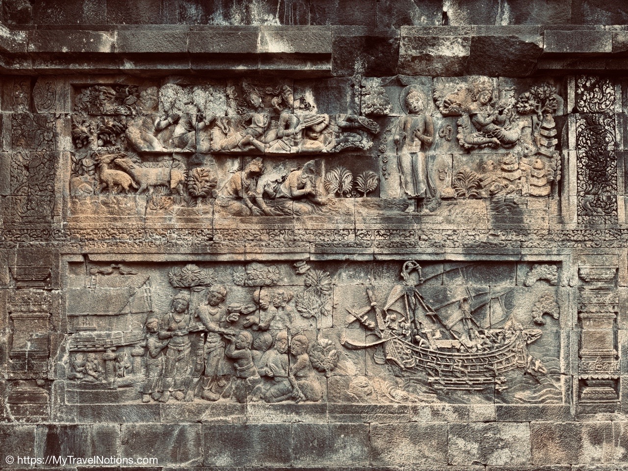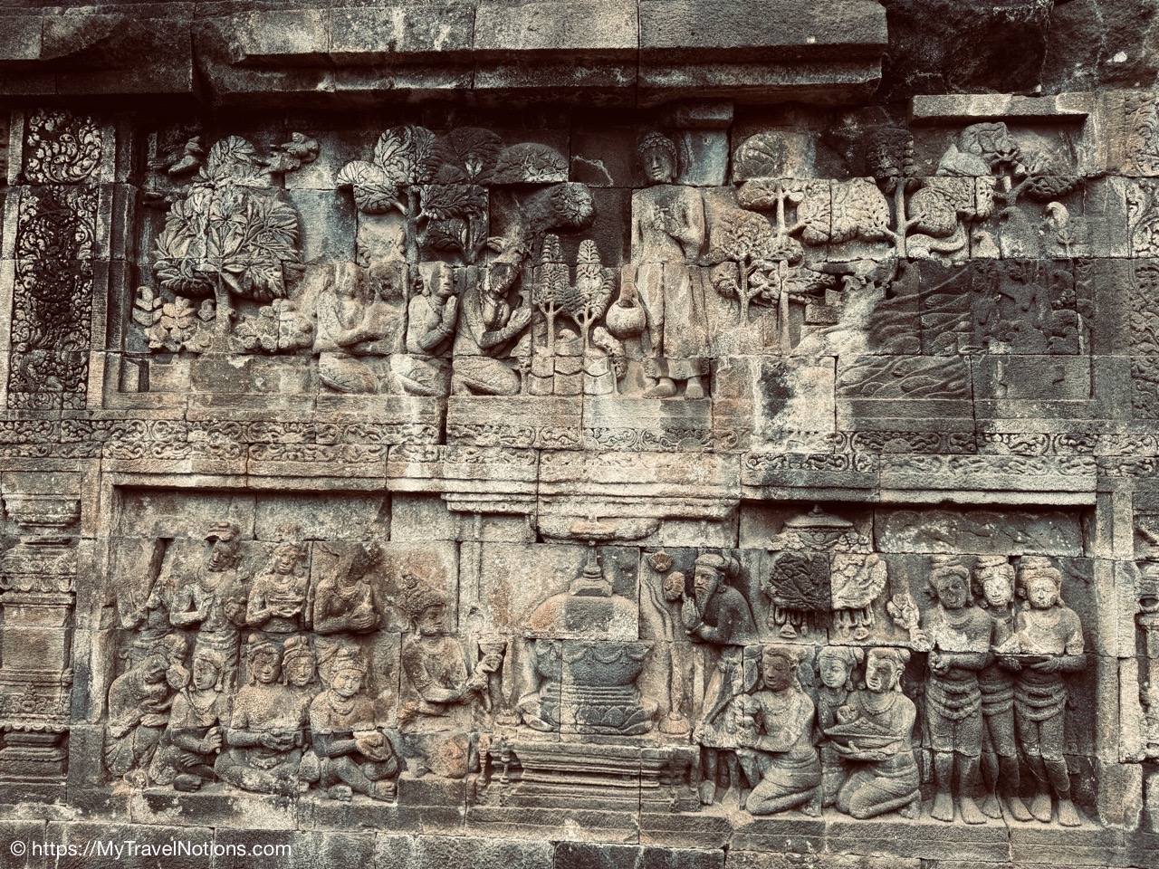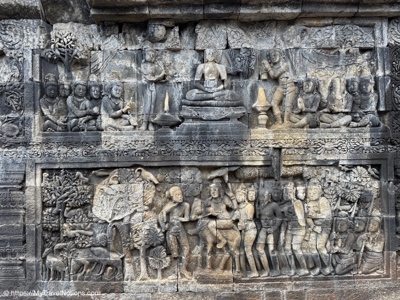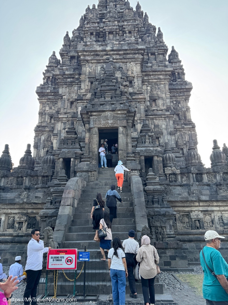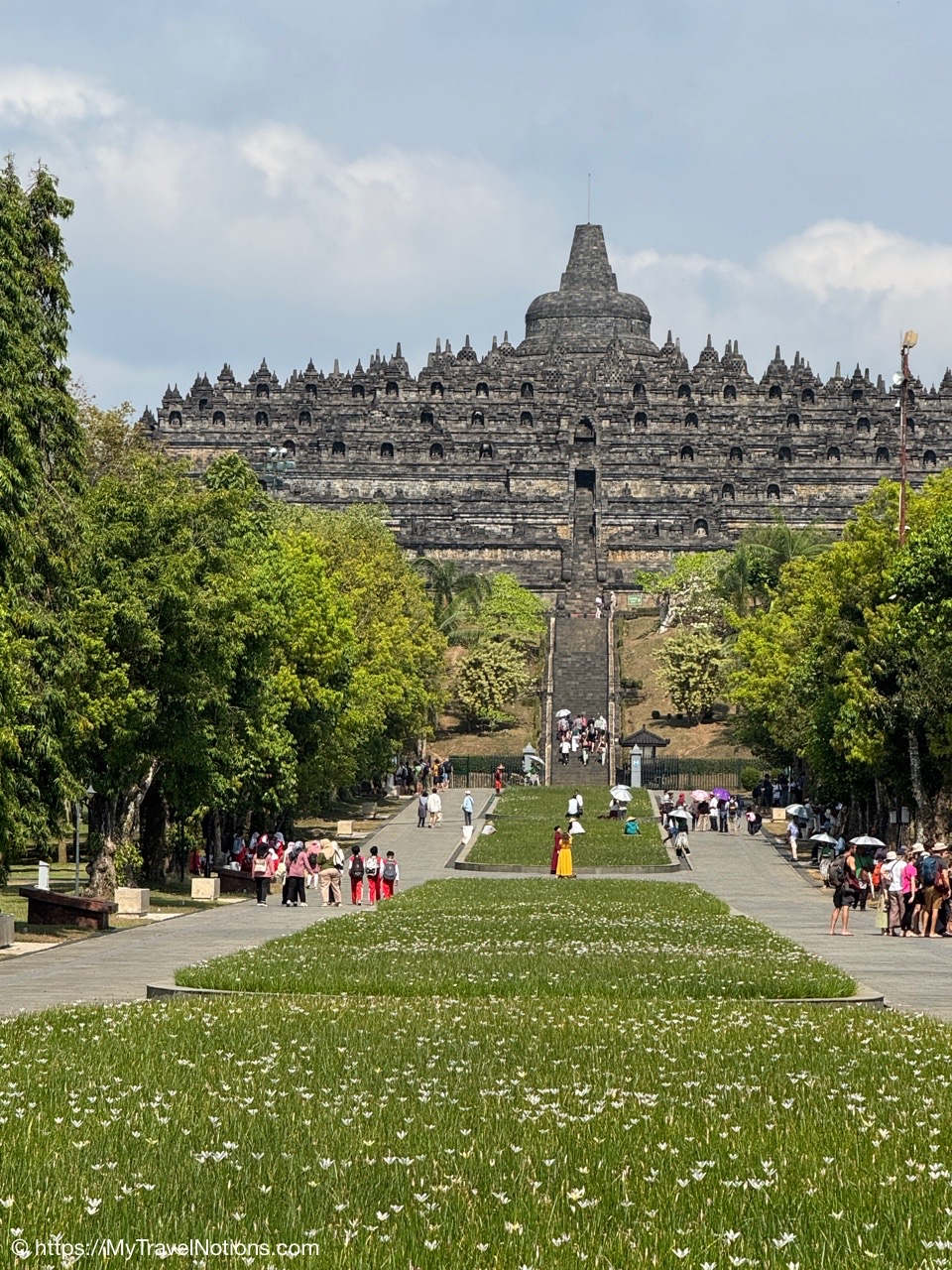 Me at the bell-shaped perforated stupas at the very top of the Borobudur Temple. (Sept. 24, 2025)The entrance of the Borobudur Temple, the world’s largest Buddhist temple is a massive 9th-century stone monument built as a three-dimensional mandala representing the path to enlightenment. It features nine stacked platforms (six square, three circular) adorned with thousands of intricate narrative relief, serving as both a major pilgrimage site and a UNESCO World Heritage Site. (Sept. 24, 2025)Me with a view of the entrance to the Borobudur Temple with my upanat sandals, required wearing to protect the ancient stone steps when climbing the monument near Yogyakarta. The slippers come with the entrance ticket and can be taken home as a souvenir and required to protect the ancient stone steps while climbing the monument. The disadvantage is that I had to carry around my actual shoes inside the provided red tote bag. I found them to be uncomfortable and ended up leaving them in my hotel room. (Sept. 24, 2025)Climbing the initial stairs to access the base of the Borobudur Temple near Yogyakarta. (Sept. 24, 2025)The base level where we began our assent up the steep stone steps to the different upper levels or terraces of the Borobudur Temple near Yogyakarta. The different levels or terraces represent stages of consciousness, culminating at the top with views of stupas and surrounding landscapes. (Sept. 24, 2025)Me at the base level where we began our assent up the steep stone steps to the different upper levels or terraces of the Borobudur Temple near Yogyakarta. The different levels represent stages of consciousness, culminating at the top with views of stupas and surrounding landscapes. (Sept. 24, 2025)A view of the various levels or terraces of the Borobudur Temple near Yogyakarta. (Sept. 24, 2025)On the first terrace or Rupadhatu Level (Square Terraces) of the Borobudur Temple near Yogyakarta. (Sept. 24, 2025)There use to be some 432 Buddha statues hidden within the arches or niches in the balustrades on the Rupadhatu Level (Square Terraces) of the Borobudur Temple. The statues within the niches on the Rupadhatu level often display different hand gestures (mudras), reflecting various aspects of Buddhist teachings. Below the Buddha are the water spouts as mythological sea creatures designed to channel heavy monsoon rainwater away from the structure, preventing erosion and damage, showcasing advanced ancient engineering for a mortarless stone structure. (Sept. 24, 2025)Me sitting at a corner of the on the Rupadhatu Level (Square Terraces) of the Borobudur Temple. (Sept. 24, 2025)The steeped arched stairways of the Borobudur Temple. Climbing the stairs represents the Buddhist path to enlightenment, with different levels representing stages of consciousness. The entire top section represents the Arupadhatu (realm of formlessness), the final stage of spiritual ascent in Buddhist cosmology, leading to enlightenment. (Sept. 24, 2025)Reliefs along the corridor walls on the terraces of the Borobudur Temple. (Sept. 24, 2025)Reliefs along the corridor walls on the terraces of the Borobudur Temple. (Sept. 24, 2025)Reliefs along the corridor walls on the terraces of the Borobudur Temple. (Sept. 24, 2025)Reliefs along the corridor walls on the terraces of the Borobudur Temple. (Sept. 24, 2025)Reliefs along the corridor walls on the terraces of the Borobudur Temple. (Sept. 24, 2025)Reliefs along the corridor walls on the terraces of the Borobudur Temple. (Sept. 24, 2025)Reliefs along the corridor walls on the terraces of the Borobudur Temple. (Sept. 24, 2025)Reliefs along the corridor walls on the terraces of the Borobudur Temple. (Sept. 24, 2025)Reliefs along the corridor walls on the terraces of the Borobudur Temple. (Sept. 24, 2025)Reliefs along the corridor walls on the terraces of the Borobudur Temple. (Sept. 24, 2025)Reliefs along the corridor walls on the terraces of the Borobudur Temple. (Sept. 24, 2025)Our Intrepid Travel tour group at the very top of the Borobudur. From left: Our guide, (Sept. 24, 2025)The bell-shaped perforated stupas at the very top of the Borobudur Temple represents Nirvana. (Sept. 24, 2025)The bell-shaped perforated stupas at the very top of the Borobudur Temple represents Nirvana. (Sept. 24, 2025)Me at the bell-shaped perforated stupas at the very top of the Borobudur Temple. (Sept. 24, 2025)The bell-shaped perforated stupas at the very top of the Borobudur Temple represents Nirvana. (Sept. 24, 2025)The bell-shaped perforated stupas at the very top of the Borobudur Temple is surrounded by mountains, including twin volcanoes Mount Merbabu and Mount Merapi. (Sept. 24, 2025)The bell-shaped perforated stupas at the very top of the Borobudur Temple is surrounded by mountains, including twin volcanoes Mount Merbabu and Mount Merapi. (Sept. 24, 2025)The bell-shaped perforated stupas at the very top of the Borobudur Temple represents Nirvana. (Sept. 24, 2025)The bell-shaped perforated stupas at the very top of the Borobudur Temple represents Nirvana. (Sept. 24, 2025)The bell-shaped perforated stupas at the very top of the Borobudur Temple represents Nirvana. (Sept. 24, 2025)The Buddhas inside the perforated stupas at the top of Borobudur symbolize the path to enlightenment. (Sept. 24, 2025)The Buddhas inside the perforated stupas at the top of Borobudur symbolize the path to enlightenment. (Sept. 24, 2025)Saying goodbye to my visit at the Borobudur Temple near Yogyakarta. (Sept. 24, 2025)The second part of our day was a 2-hour walking tour through the traditional Javanese village of Candirejo close to the Borobudur Temple near Yogyakarta. The village is considered a cultural and eco-tourism destination, offering visitors an authentic glimpse into rural life. (Sept. 24, 2025)Walking through the Candirejo Village close to the Borobudur Temple near Yogyakarta. It is known for its traditional Javanese culture and village life. (Sept. 24, 2025)The Candirejo Village close to the Borobudu