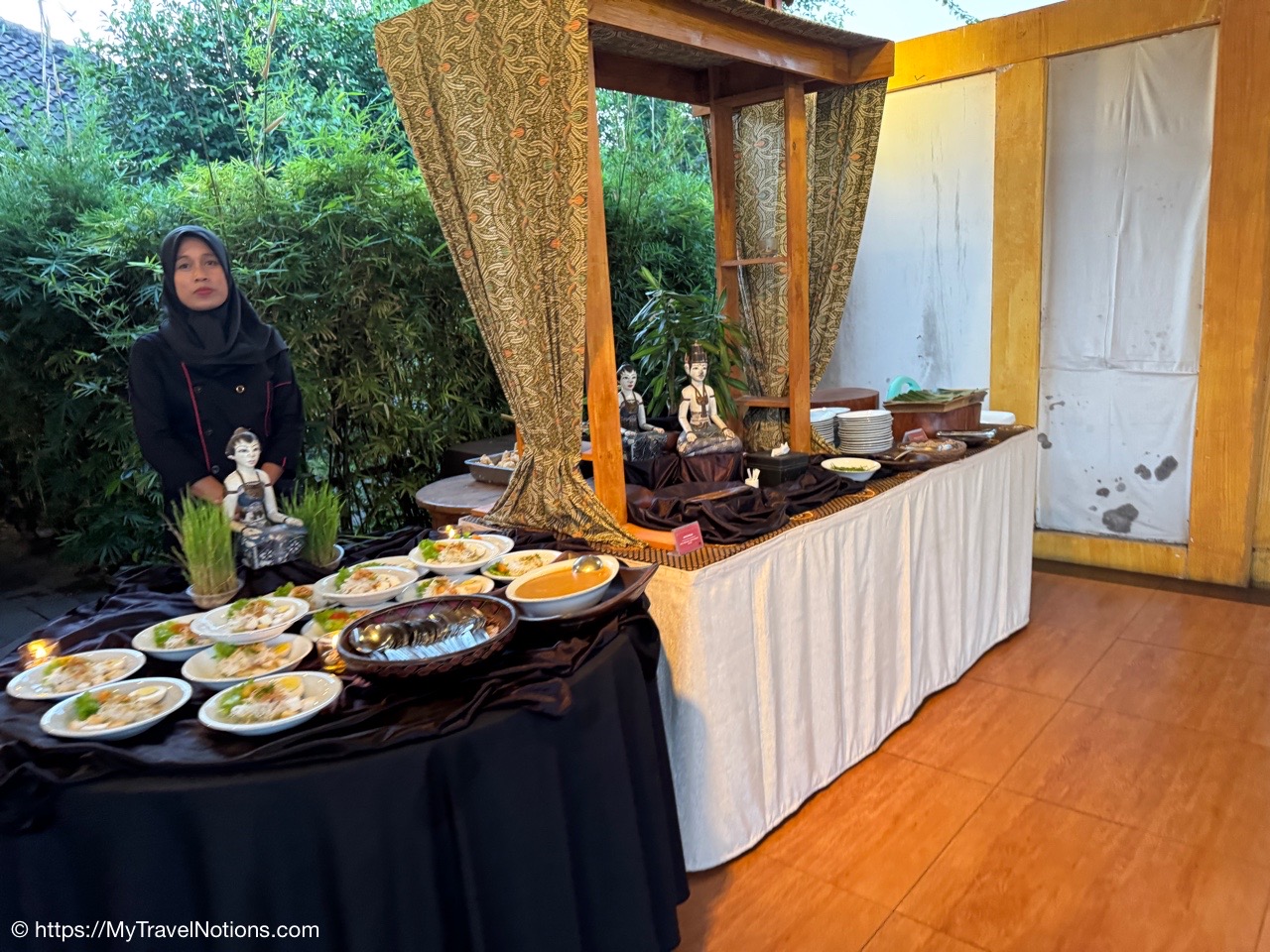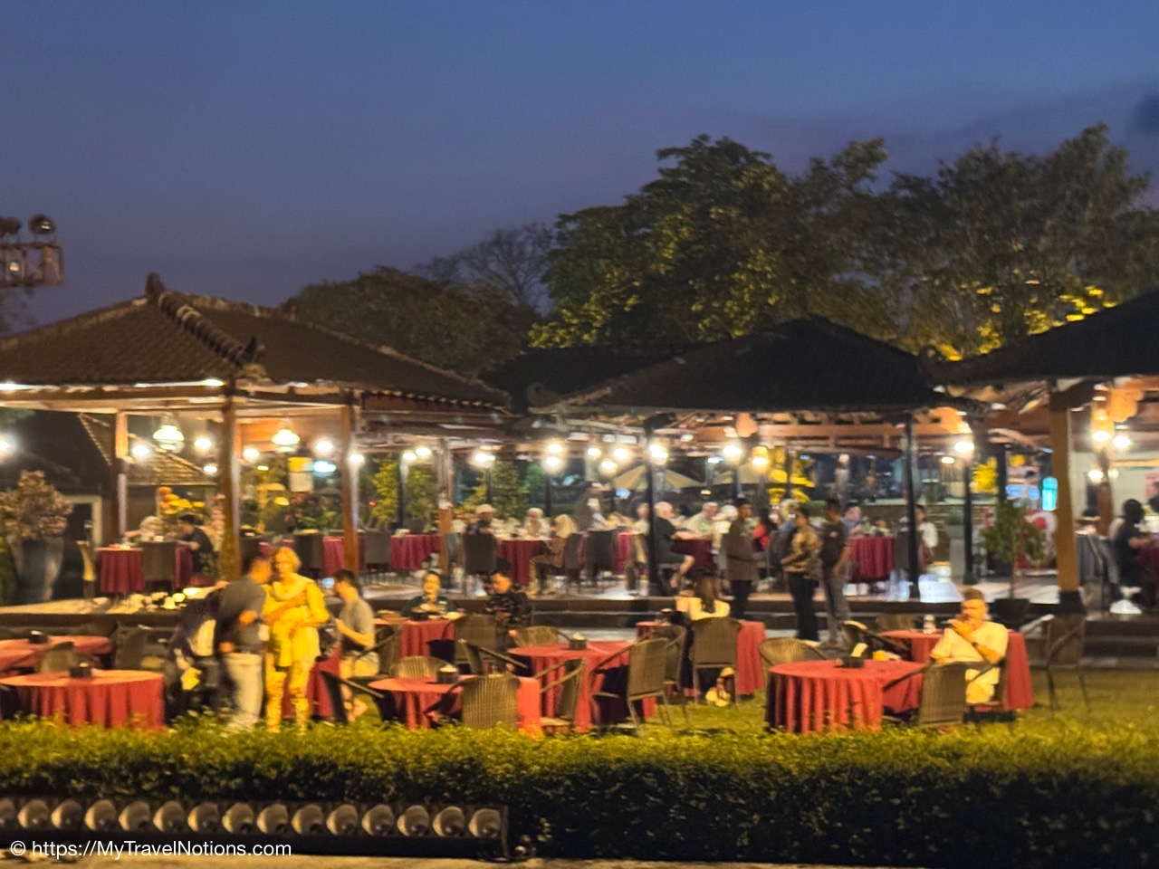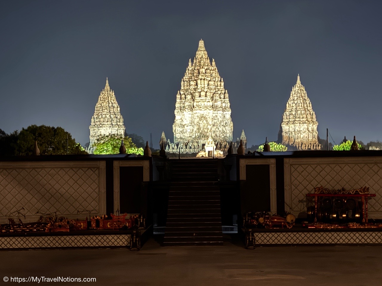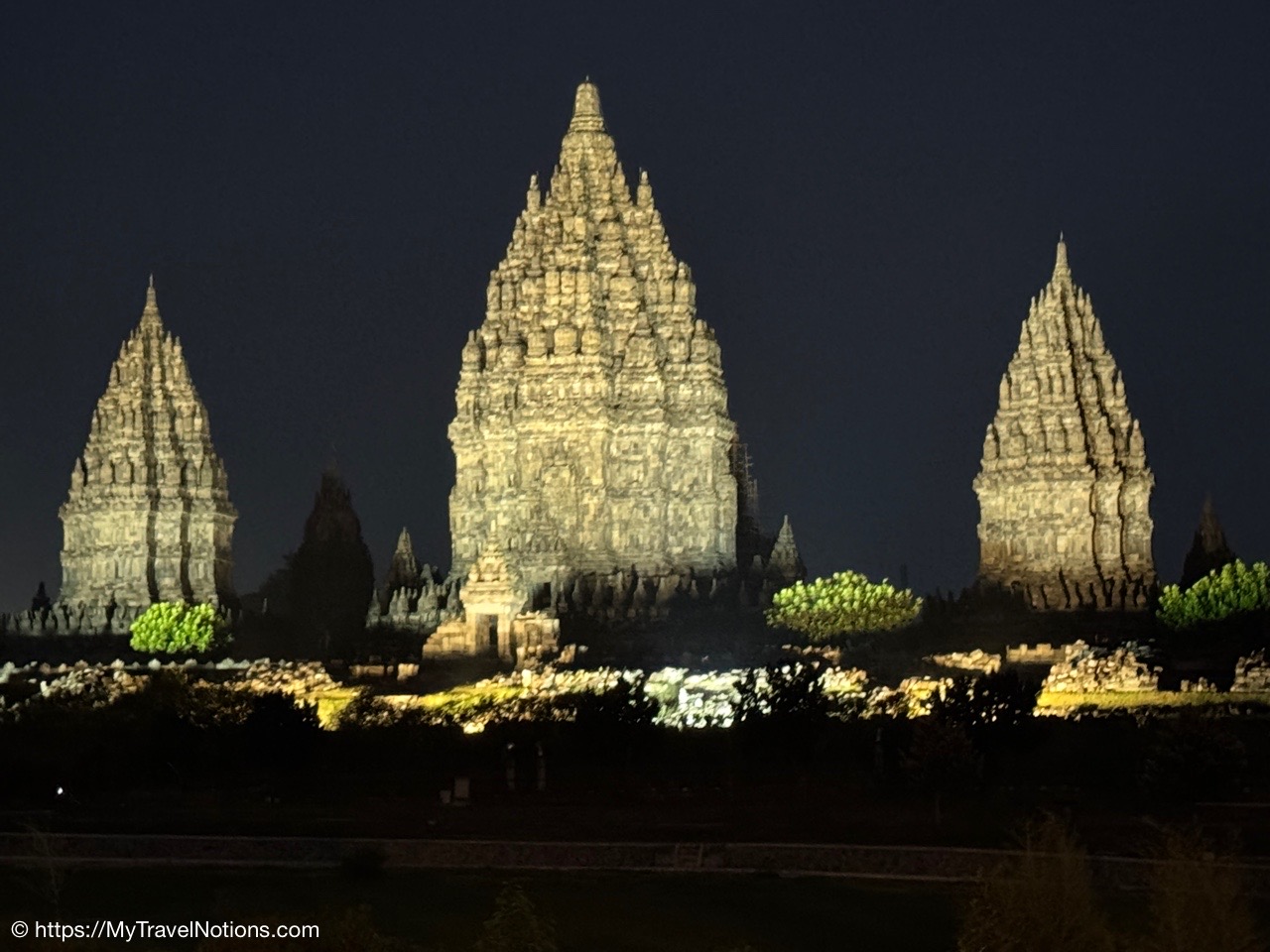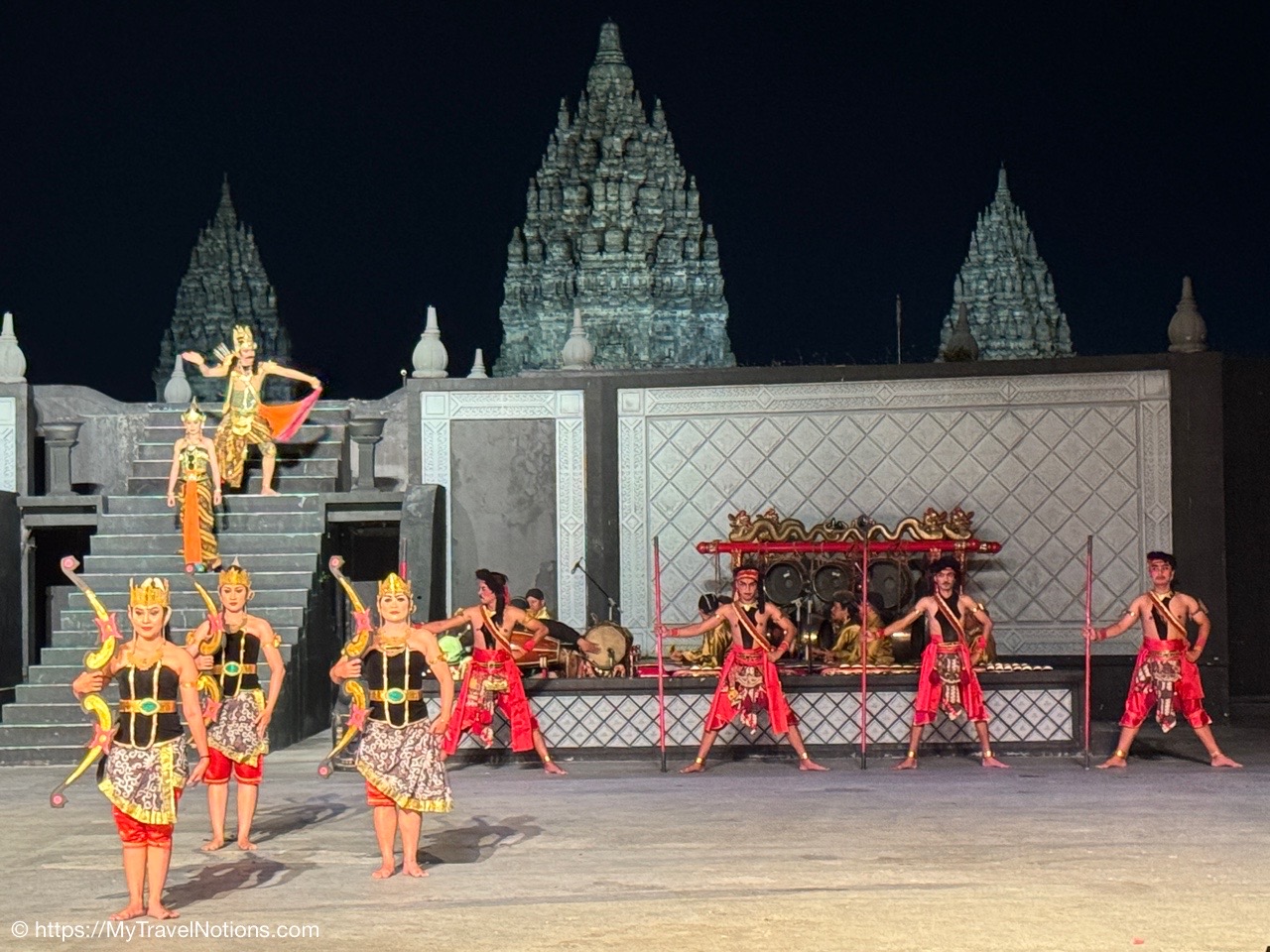 And, for the evening, our travel group dined, buffet-style, at the Rama Shinta Garden Resto with its stunning evening views of the illuminated Prambanan Temple before heading to an outdoor performance of the Ramayana Ballet Prambanan.