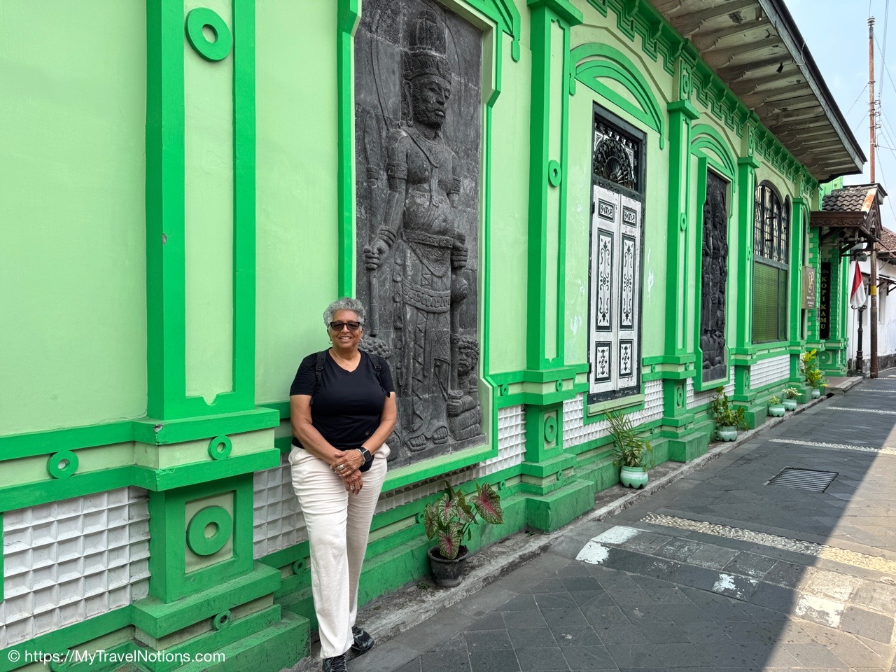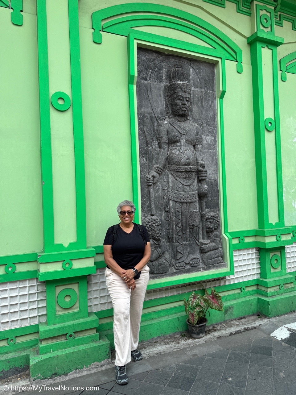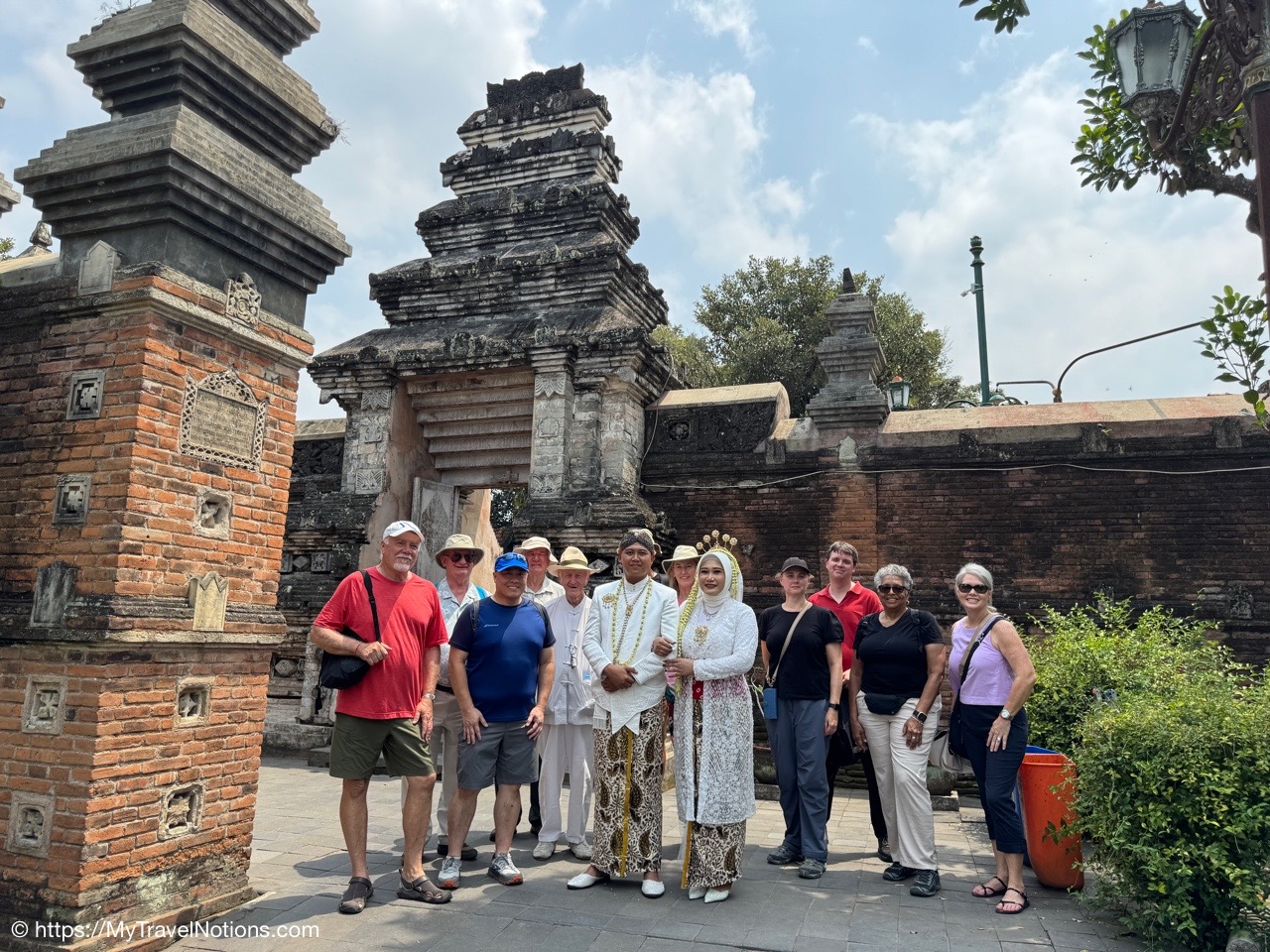 The Mataram Grand Mosque in Kotagede, Yogyakarta, is the oldest mosque in the region, established around 1575. It serves as a significant historical site and still functions as a place of worship, showcasing unique Javanese architecture with Hindu-Buddhist influences and proximity to the royal tombs of the Mataram Kingdom. We could not go in today because there was a wedding taking place. (Sept. 25, 2025)Me at the entrance between the Mataram Grand Mosque and the royal cemetery or the early rulers and nobles of the powerful 16th-century Mataram Sultanate in Kotagede, near Yogyakarta. (Sept. 25, 2025)At the entrance gate between the Mataram Grand Mosque and the royal cemetery or the early rulers and nobles of the powerful 16th-century Mataram Sultanate in Kotagede, near Yogyakarta. (Sept. 25, 2025)Continuing our walk through another gate to the royal cemetery or the early rulers and nobles of the powerful 16th-century Mataram Sultanate in Kotagede, near Yogyakarta. (Sept. 25, 2025)My Intrepid tour group and myself at another gate between the Mataram Grand Mosque and the royal cemetery or the early rulers and nobles of the powerful 16th-century Mataram Sultanate in Kotagede, near Yogyakarta. (Sept. 25, 2025)The Mataram Tomb Complex of the kings of Mataram in Kotagede, near Yogyakarta. (Sept. 25, 2025)The entrance to the Tombs of the Kings of Mataram, the royal cemetery, in Kotagede, near Yogyakarta. The cemetery was established between 1589 and 1606 as the final resting place for the first Mataram Sultanate kings, including founder Panembahan Senopati. Our group did not enter, but visitors must wear traditional Javanese attire (surjan/shirt and sarong), enter barefooted, and respect limited opening hours. (Sept. 25, 2025)Our group standing with the newlyweds who were just married inside the Great Mataram Kotagede Mosque in Kotagede, near Yogyakarta. (Sept. 25, 2025)The gorgeous bride and groom who were just married at the Great Mataram Kotagede Mosque in Kotagede, near Yogyakarta. (Sept. 25, 2025)Walking past the Great Mataram Kotagede Mosque in Kotagede, near Yogyakarta after the wedding festivities. (Sept. 25, 2025)On our neighborhood walk from the historical complex of the Mataram Sultanate Mataram Grand Mosque to the Harto Suharto or HS Silver silversmiths workshop and store in Kotagede, Yogyakarta. (Sept. 25, 2025)On our neighborhood walk from the historical complex of the Mataram Sultanate Mataram Grand Mosque to the Harto Suharto or HS Silver silversmiths workshop and store in Kotagede, Yogyakarta. (Sept. 25, 2025)On our neighborhood walk from the historical complex of the Mataram Sultanate Mataram Grand Mosque to the Harto Suharto or HS Silver silversmiths workshop and store in Kotagede, Yogyakarta. (Sept. 25, 2025)Getting in a photo on our neighborhood walk from the historical complex of the Mataram Sultanate Mataram Grand Mosque to the Harto Suharto or HS Silver silversmiths workshop and store in Kotagede, Yogyakarta. (Sept. 25, 2025)Getting in a photo on our neighborhood walk from the historical complex of the Mataram Sultanate Mataram Grand Mosque to the Harto Suharto or HS Silver silversmiths workshop and store in Kotagede, Yogyakarta. (Sept. 25, 2025)On our neighborhood walk from the historical complex of the Mataram Sultanate Mataram Grand Mosque to the Harto Suharto or HS Silver silversmiths workshop and store in Kotagede, Yogyakarta. (Sept. 25, 2025)Mural paintings on the alleyway walls through our neighborhood walk from the historical complex of the Mataram Sultanate Mataram Grand Mosque to the Harto Suharto or HS Silver silversmiths workshop and store in Kotagede, Yogyakarta. (Sept. 25, 2025)Walking through the neighborhood alleyways from the historical complex of the Mataram Sultanate Mataram Grand Mosque to the Harto Suharto or HS Silver silversmiths workshop and store in Kotagede, Yogyakarta. (Sept. 25, 2025)Mural paintings on the alleyway walls through our neighborhood walk from the historical complex of the Mataram Sultanate Mataram Grand Mosque to the Harto Suharto or HS Silver silversmiths workshop and store in Kotagede, Yogyakarta. (Sept. 25, 2025)Walking into the Harto Suharto or HS Silver, a silversmiths workshop and store in Kotagede, Yogyakarta. Kotagede residents worked as silversmiths to produce jewelry designs for the royal families which is why it is known as “The Heart of Silver” in Yogyakarta. produces beautiful silver tea sets, bracelets and necklaces, and fine filigree brooches. (Sept. 25, 2025)Inside the HS Silver, a silversmith workshop and store in Kotagede, Yogyakarta, offers designs distinguished by Javanese motifs, influenced with bold (solid) heavily textured and silver string wires techniques (filigree). During the colonial period of the 1930s, silverworks and silver handicrafts prospered in Kotagede. (Sept. 25, 2025)Inside the HS Silver, a silversmith workshop and store in Kotagede, Yogyakarta, offers designs distinguished by Javanese motifs, influenced with bold (solid) heavily textured and silver string wires techniques (filigree). During the colonial period of the 1930s, silverworks and silver handicrafts prospered in Kotagede. (Sept. 25, 2025)Talented craftswomen at HS Silver, a silversmith workshop and store in Kotagede, Yogyakarta. (Sept. 25, 2025)Talented craftswomen at HS Silver, a silversmith workshop and store in Kotagede, Yogyakarta. (Sept. 25, 2025)The retail shop of the HS Silver in Kotagede, Yogyakarta. (Sept. 25, 2025)Arriving at the Leksa Ganesha Batik Gallery in the village of Tembi, Yogyakarta, known for promoting the art of batik, emphasizing the cultural significance of and techniques involved. Also, where our tour group members got to dabble in the art of batik-making. (Sept. 25, 2025)Getting basic batik making instructions on how to use the hot wax bowl and brush at the Leksa Ganesha Batik Gallery in the village of Tembi, Yogyakarta, where our group got hands-on experiences in traditional Javanese batik art, includin