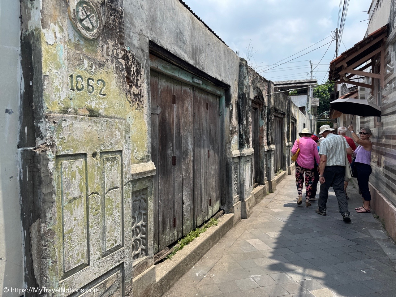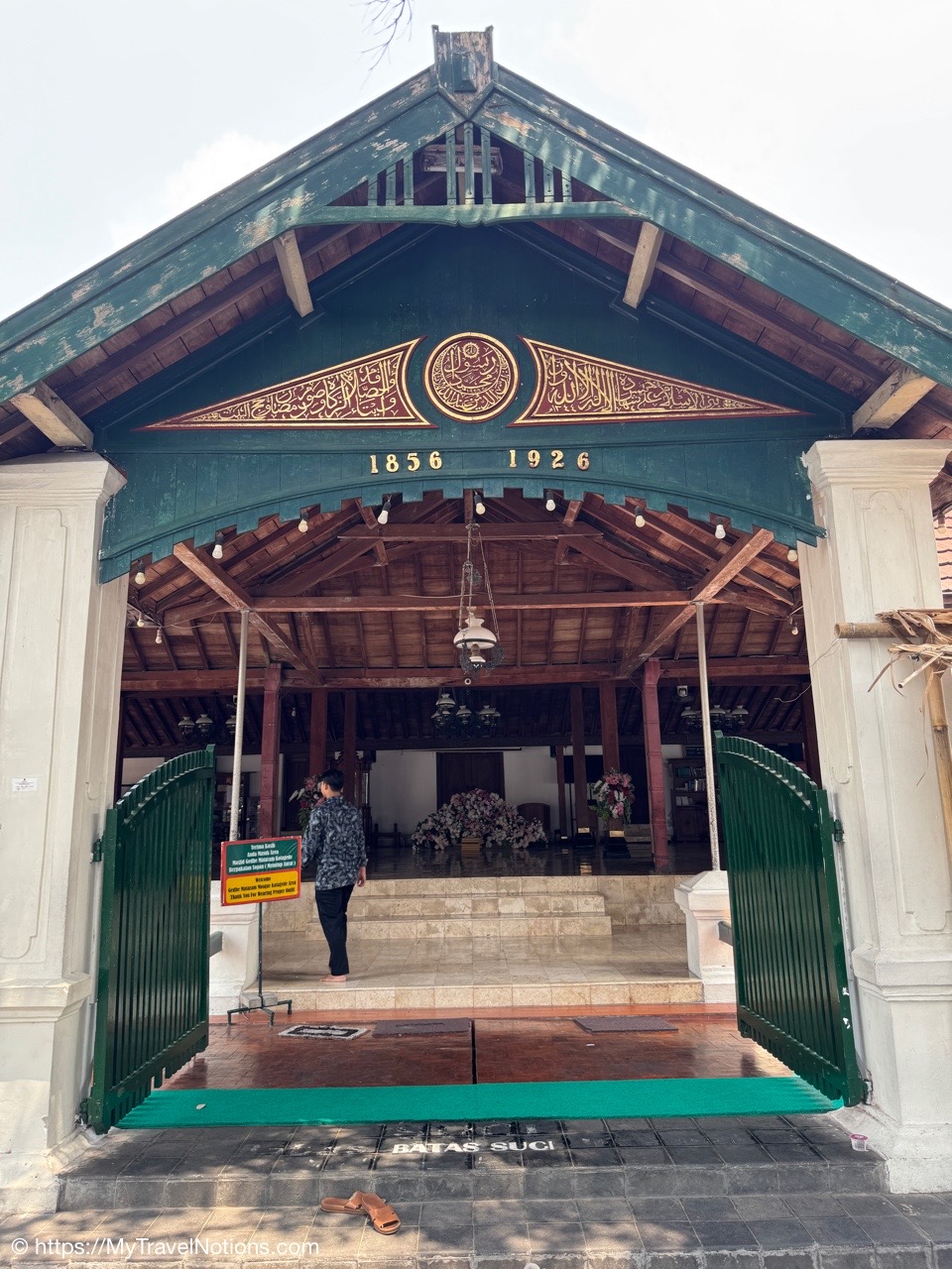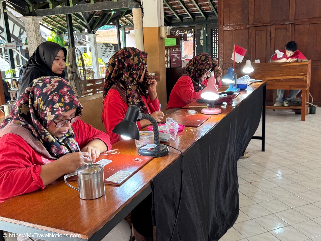 The Mataram Grand Mosque in Kotagede, Yogyakarta, is the oldest mosque in the region, established around 1575. It serves as a significant historical site and still functions as a place of worship, showcasing unique Javanese architecture with Hindu-Buddhist influences and proximity to the royal tombs of the Mataram Kingdom. We could not go in today because there was a wedding taking place. (Sept. 25, 2025)Me at the entrance between the Mataram Grand Mosque and the royal cemetery or the early rulers and nobles of the powerful 16th-century Mataram Sultanate in Kotagede, near Yogyakarta. (Sept. 25, 2025)At the entrance gate between the Mataram Grand Mosque and the royal cemetery or the early rulers and nobles of the powerful 16th-century Mataram Sultanate in Kotagede, near Yogyakarta. (Sept. 25, 2025)Continuing our walk through another gate to the royal cemetery or the early rulers and nobles of the powerful 16th-century Mataram Sultanate in Kotagede, near Yogyakarta. (Sept. 25, 2025)My Intrepid tour group and myself at another gate between the Mataram Grand Mosque and the royal cemetery or the early rulers and nobles of the powerful 16th-century Mataram Sultanate in Kotagede, near Yogyakarta. (Sept. 25, 2025)The Mataram Tomb Complex of the kings of Mataram in Kotagede, near Yogyakarta. (Sept. 25, 2025)The entrance to the Tombs of the Kings of Mataram, the royal cemetery, in Kotagede, near Yogyakarta. The cemetery was established between 1589 and 1606 as the final resting place for the first Mataram Sultanate kings, including founder Panembahan Senopati. Our group did not enter, but visitors must wear traditional Javanese attire (surjan/shirt and sarong), enter barefooted, and respect limited opening hours. (Sept. 25, 2025)Our group standing with the newlyweds who were just married inside the Great Mataram Kotagede Mosque in Kotagede, near Yogyakarta. (Sept. 25, 2025)The gorgeous bride and groom who were just married at the Great Mataram Kotagede Mosque in Kotagede, near Yogyakarta. (Sept. 25, 2025)Walking past the Great Mataram Kotagede Mosque in Kotagede, near Yogyakarta after the wedding festivities. (Sept. 25, 2025)On our neighborhood walk from the historical complex of the Mataram Sultanate Mataram Grand Mosque to the Harto Suharto or HS Silver silversmiths workshop and store in Kotagede, Yogyakarta. (Sept. 25, 2025)On our neighborhood walk from the historical complex of the Mataram Sultanate Mataram Grand Mosque to the Harto Suharto or HS Silver silversmiths workshop and store in Kotagede, Yogyakarta. (Sept. 25, 2025)On our neighborhood walk from the historical complex of the Mataram Sultanate Mataram Grand Mosque to the Harto Suharto or HS Silver silversmiths workshop and store in Kotagede, Yogyakarta. (Sept. 25, 2025)Getting in a photo on our neighborhood walk from the historical complex of the Mataram Sultanate Mataram Grand Mosque to the Harto Suharto or HS Silver silversmiths workshop and store in Kotagede, Yogyakarta. (Sept. 25, 2025)Getting in a photo on our neighborhood walk from the historical complex of the Mataram Sultanate Mataram Grand Mosque to the Harto Suharto or HS Silver silversmiths workshop and store in Kotagede, Yogyakarta. (Sept. 25, 2025)On our neighborhood walk from the historical complex of the Mataram Sultanate Mataram Grand Mosque to the Harto Suharto or HS Silver silversmiths workshop and store in Kotagede, Yogyakarta. (Sept. 25, 2025)Mural paintings on the alleyway walls through our neighborhood walk from the historical complex of the Mataram Sultanate Mataram Grand Mosque to the Harto Suharto or HS Silver silversmiths workshop and store in Kotagede, Yogyakarta. (Sept. 25, 2025)Walking through the neighborhood alleyways from the historical complex of the Mataram Sultanate Mataram Grand Mosque to the Harto Suharto or HS Silver silversmiths workshop and store in Kotagede, Yogyakarta. (Sept. 25, 2025)Mural paintings on the alleyway walls through our neighborhood walk from the historical complex of the Mataram Sultanate Mataram Grand Mosque to the Harto Suharto or HS Silver silversmiths workshop and store in Kotagede, Yogyakarta. (Sept. 25, 2025)Walking into the Harto Suharto or HS Silver, a silversmiths workshop and store in Kotagede, Yogyakarta. Kotagede residents worked as silversmiths to produce jewelry designs for the royal families which is why it is known as “The Heart of Silver” in Yogyakarta. produces beautiful silver tea sets, bracelets and necklaces, and fine filigree brooches. (Sept. 25, 2025)Inside the HS Silver, a silversmith workshop and store in Kotagede, Yogyakarta, offers designs distinguished by Javanese motifs, influenced with bold (solid) heavily textured and silver string wires techniques (filigree). During the colonial period of the 1930s, silverworks and silver handicrafts prospered in Kotagede. (Sept. 25, 2025)Inside the HS Silver, a silversmith workshop and store in Kotagede, Yogyakarta, offers designs distinguished by Javanese motifs, influenced with bold (solid) heavily textured and silver string wires techniques (filigree). During the colonial period of the 1930s, silverworks and silver handicrafts prospered in Kotagede. (Sept. 25, 2025)Talented craftswomen at HS Silver, a silversmith workshop and store in Kotagede, Yogyakarta. (Sept. 25, 2025)Talented craftswomen at HS Silver, a silversmith workshop and store in Kotagede, Yogyakarta. (Sept. 25, 2025)The retail shop of the HS Silver in Kotagede, Yogyakarta. (Sept. 25, 2025)Arriving at the Leksa Ganesha Batik Gallery in the village of Tembi, Yogyakarta, known for promoting the art of batik, emphasizing the cultural significance of and techniques involved. Also, where our tour group members got to dabble in the art of batik-making. (Sept. 25, 2025)Getting basic batik making instructions on how to use the hot wax bowl and brush at the Leksa Ganesha Batik Gallery in the village of Tembi, Yogyakarta, where our group got hands-on experiences in traditional Javanese batik art, includin