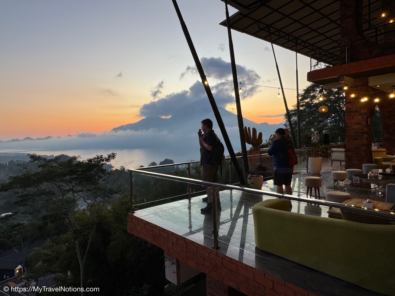 We left the Ubud Village Hotel at 5:00 a.m. to begin our long and wonderful day starting at the Caldera Hotel and Restaurant in Bali for early morning views of Mount Batur and a delicious breakfast with views.