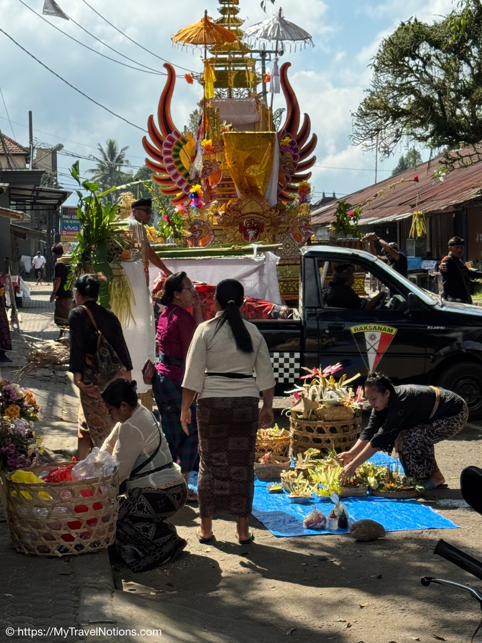 And, something wholly unexpected, during our walk through the village, was a family and the community prepared for a Hindu cremation ceremony. This Balinese Hindu ritual transforms the body’s physical elements back into the cosmos, freeing the soul from its physical body and earthly bonds allowing the soul to achieve its liberation and journey to the afterlife.