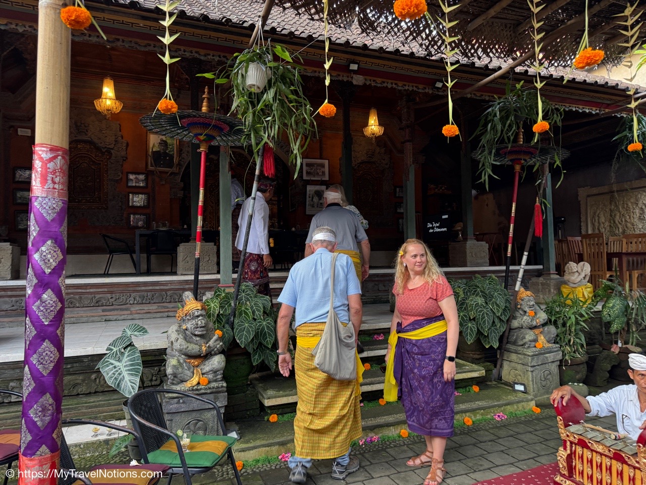 I actually enjoyed this very casual and relaxing day before our group’s royal Balinese dinner at Ubud Palace (Puri Saren Agung) where we were dressed, over our western clothing, with a traditional sarong outfit.