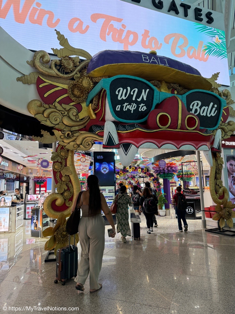 Arriving at the international terminal of I Gusti Ngurah Rai Bali International Airport (DPS) airport for my flight from Bali to Dubai (DXB) and from there to home, the Dallas/Fort Worth International Airport (DFW). Both flights on Emirates. (Oct. 1, 2025)Walking through duty-free, as always, before getting to my gate at the international terminal of I Gusti Ngurah Rai Bali International Airport (DPS) airport for my flight from Bali to Dubai (DXB) and from there to home, the Dallas/Fort Worth International Airport (DFW). Both flights on Emirates. (Oct. 1, 2025)